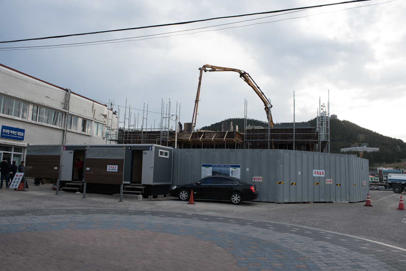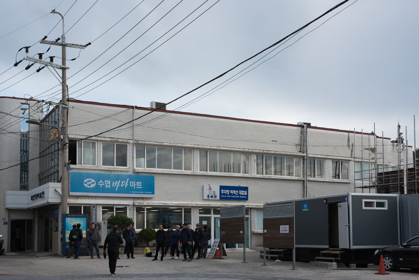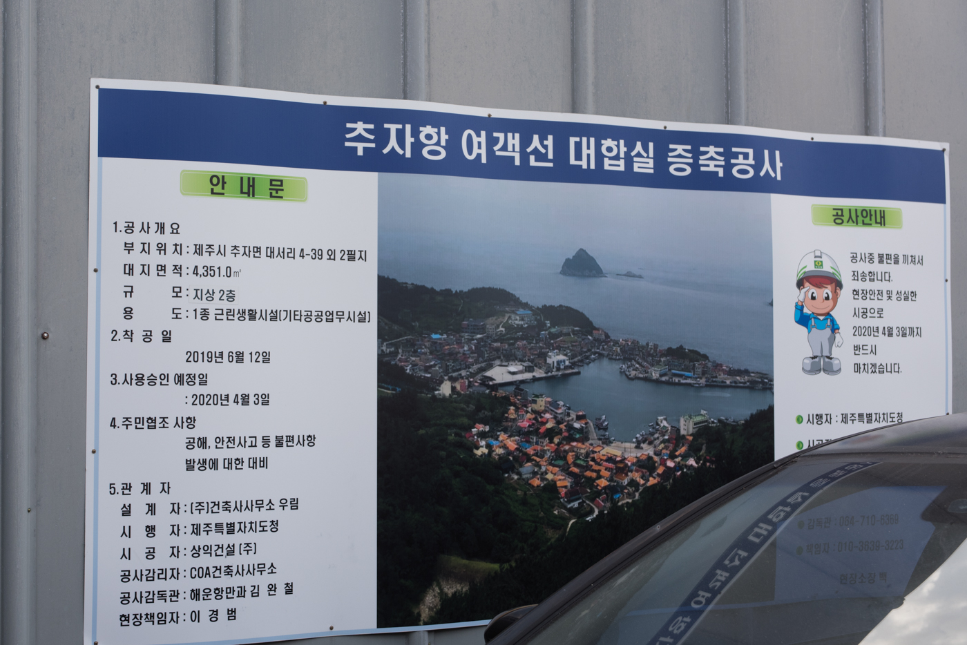 추자항 여객선 임시 대합실의 모습이다. 기존 대합실은 2020.4.3일 완공 예정으로 증축공사 중이였다.