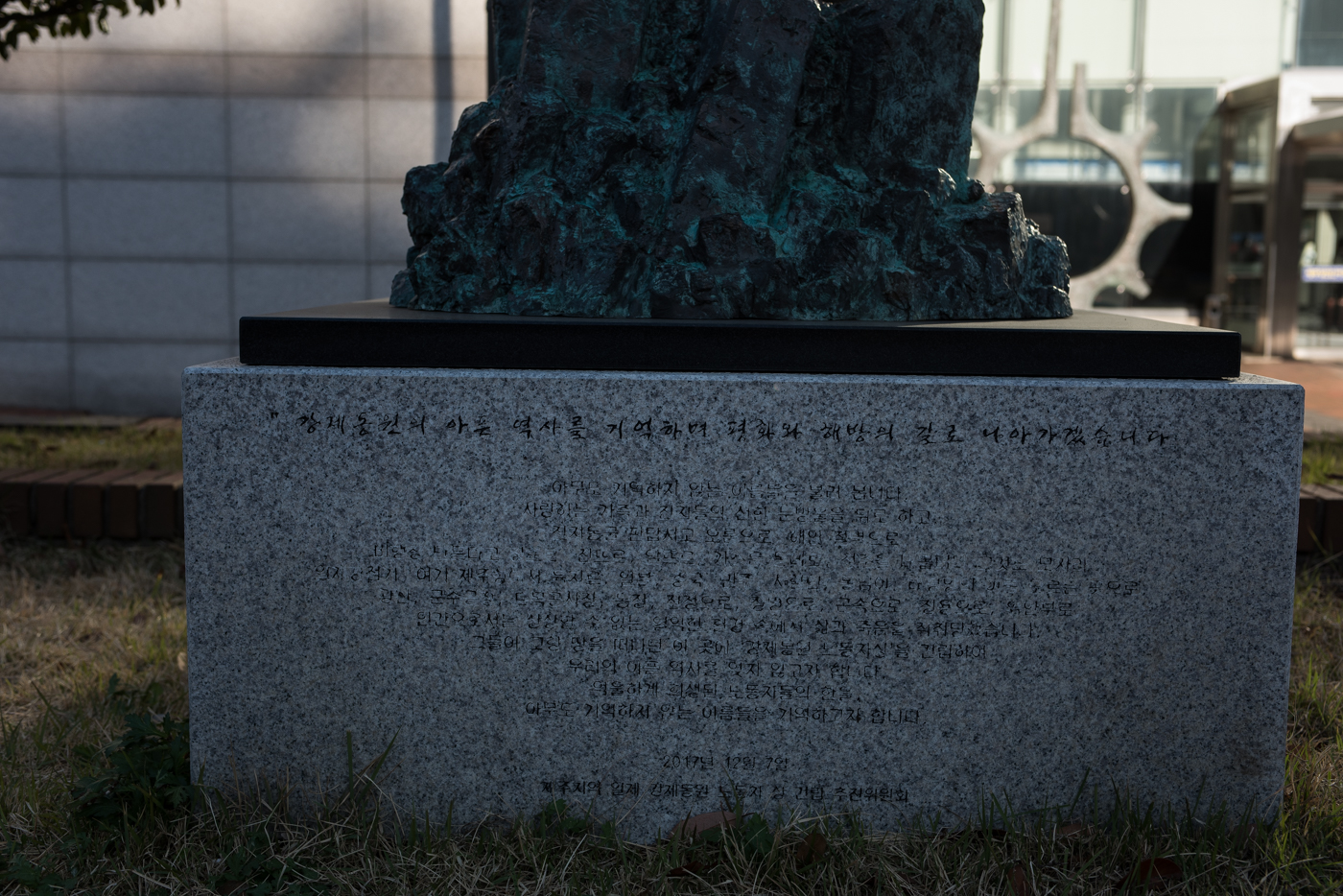 터미널 앞에 세워져 있는 '제주지역 일제 강제동원 노동자 상' 2017년 12월7일 건립되었다.