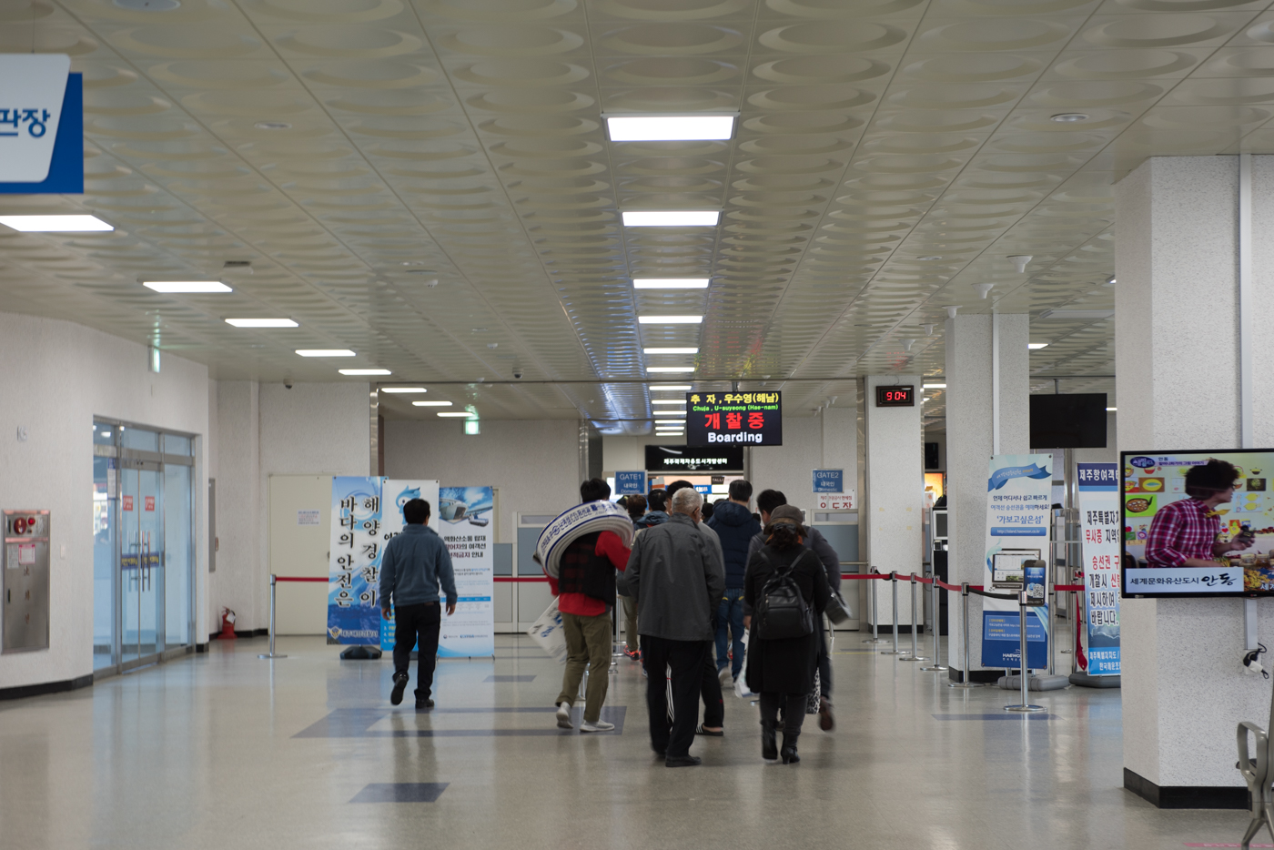 대합실에서 승선을 기다리고 있다.