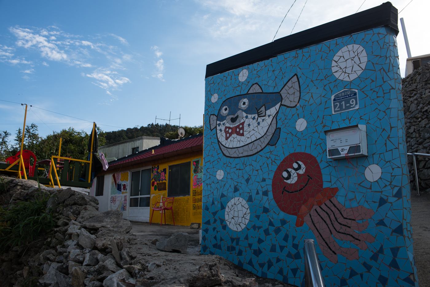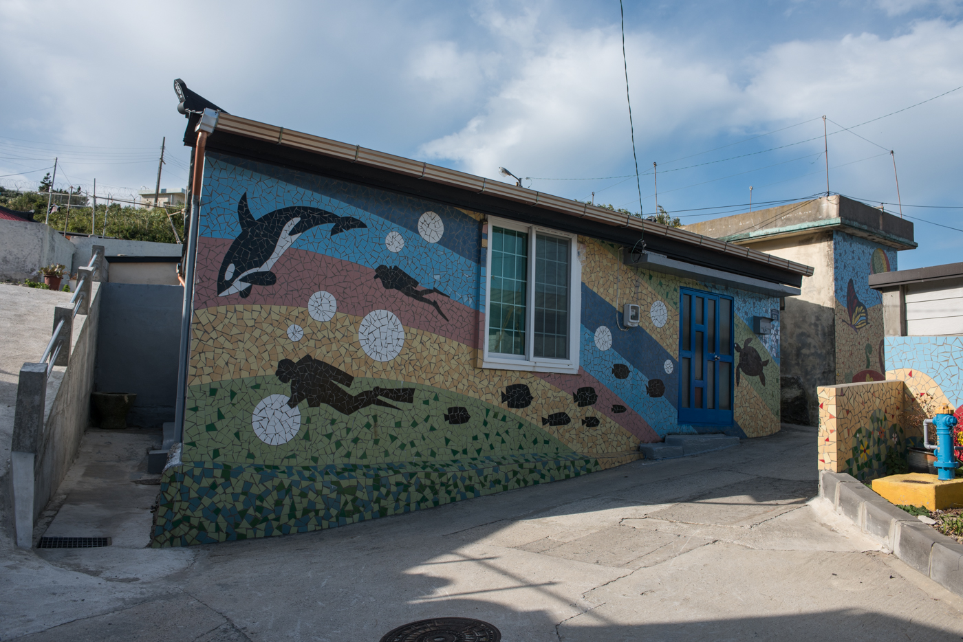벽화는 타일로 만들어져 있는데 추자도를 연상할 수 있는 테마가 없다는게 아쉽다.