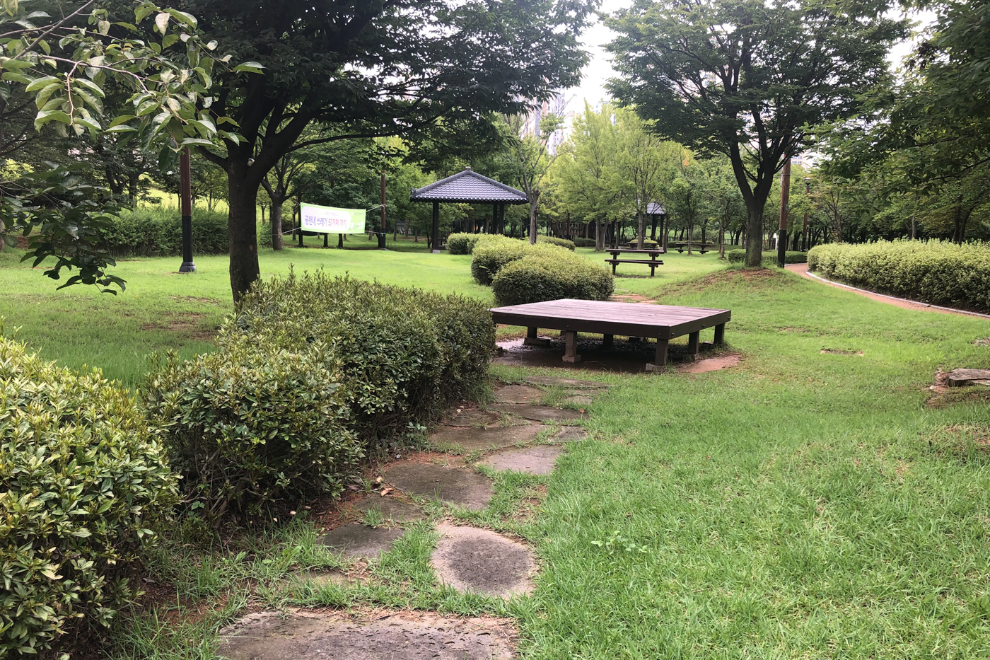 공원 역시 장마의 영향으로 물에 흠뻑 젖은 푸르름을 발산하고 있어 산책하기엔 더없이 좋다.