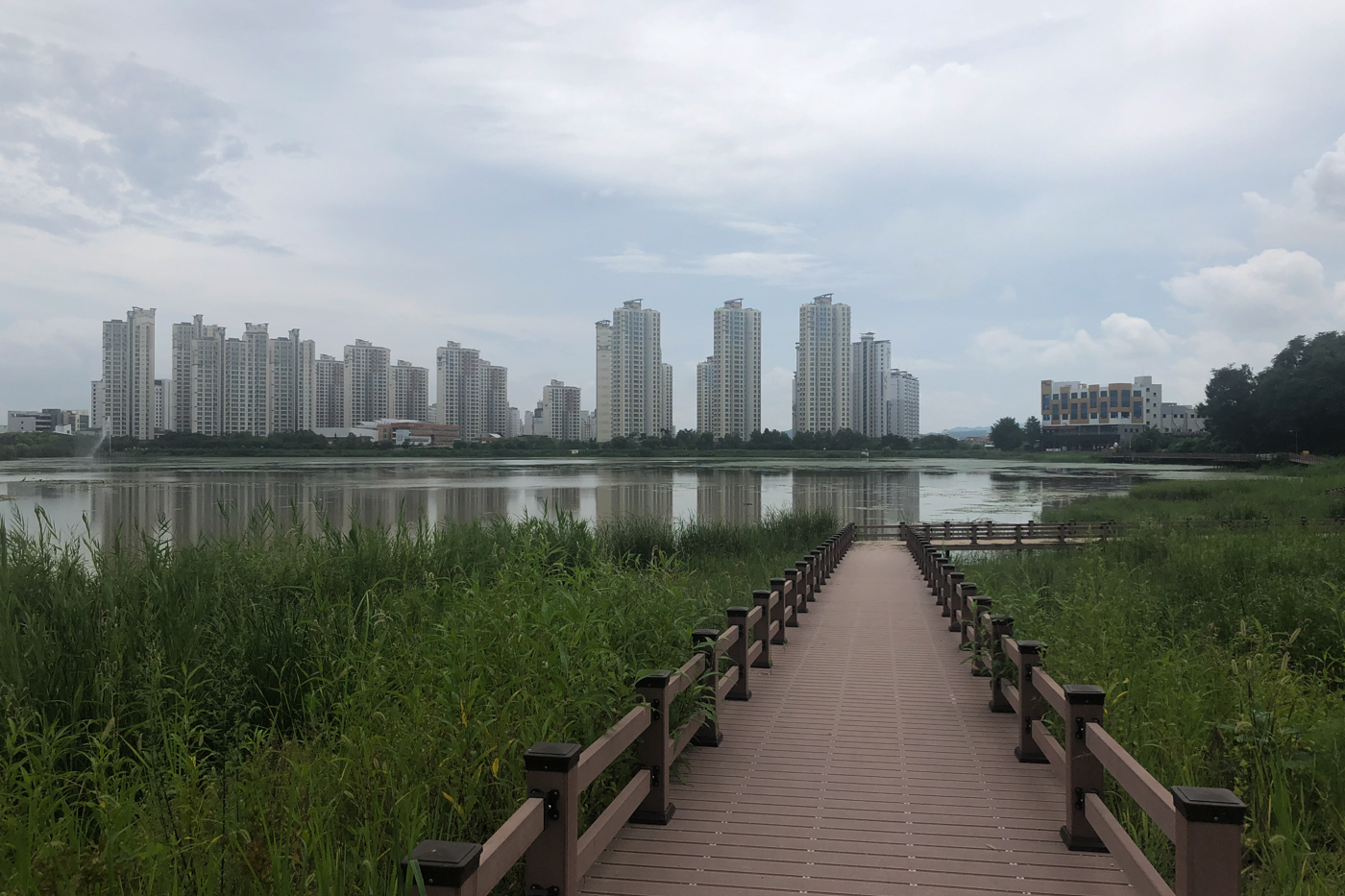 고층아파트와 호수의 조합, 괜찮은 뷰를 만들어 내고 있다.