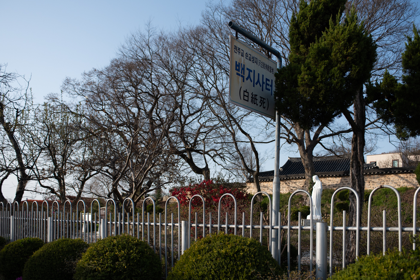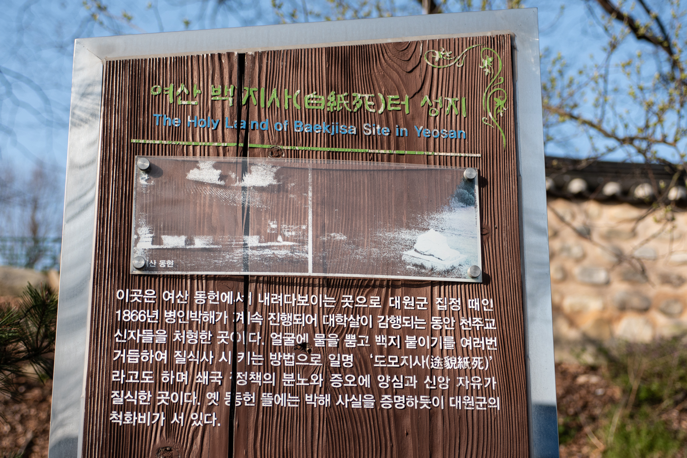 '백지사(白紙死)터 성지'는 여산 동헌에서 내려다 보이는 곳으로 천주교 신자들을 처형한 곳이다.