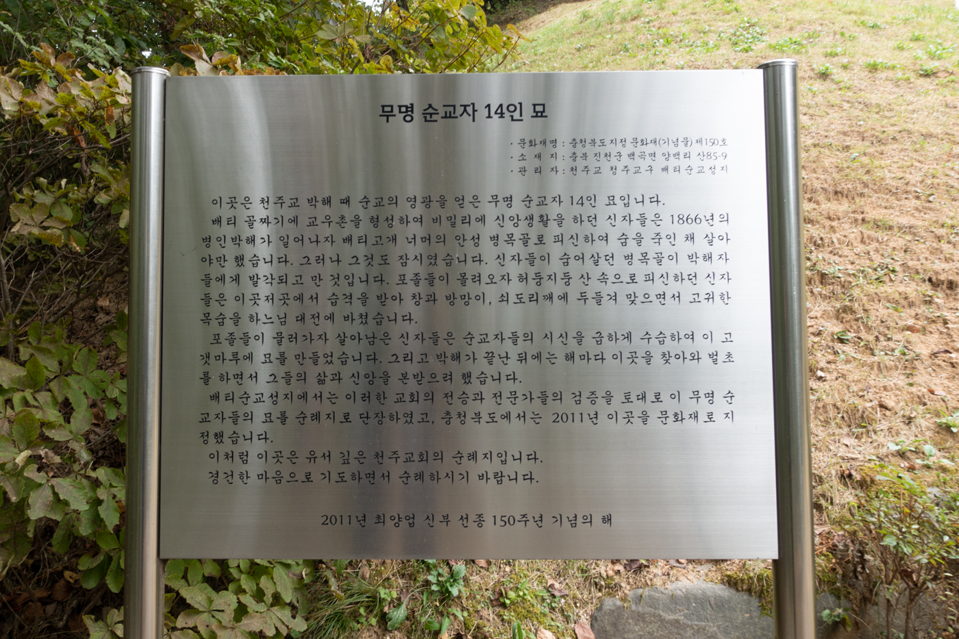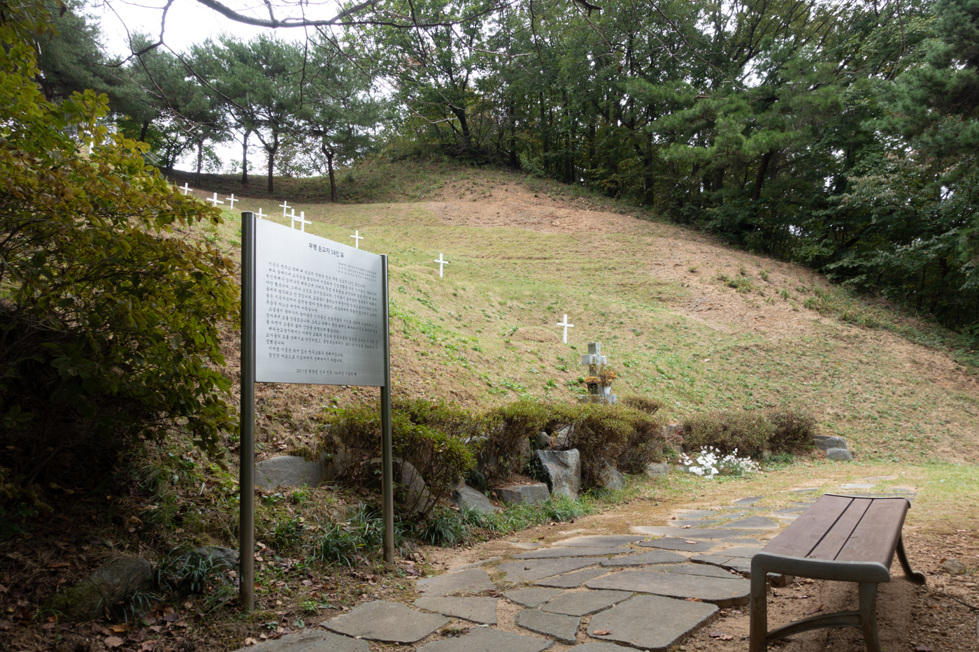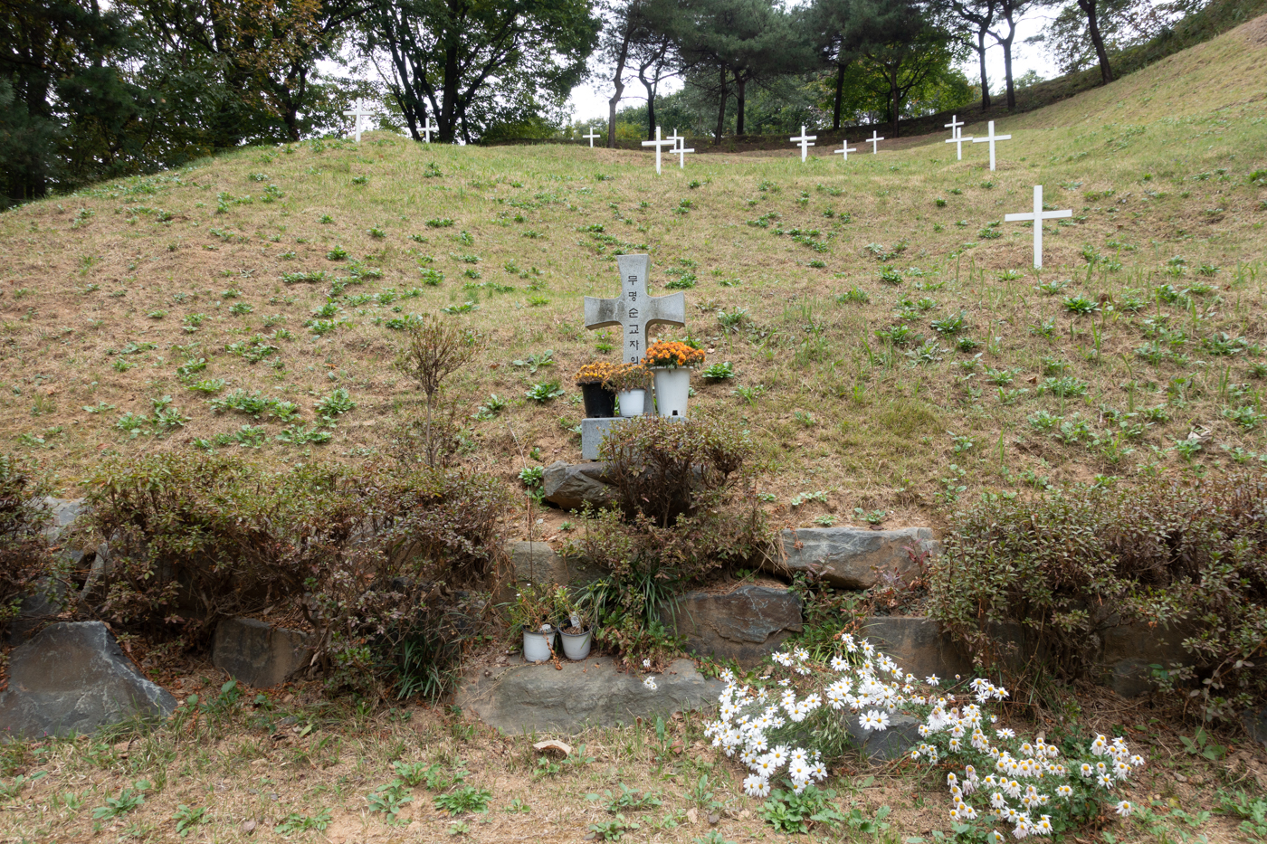 뷰가 좋은 곳에서 바라 본 무명 순교자 14인 묘.