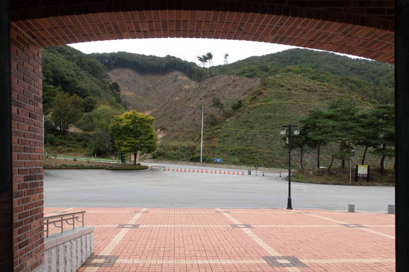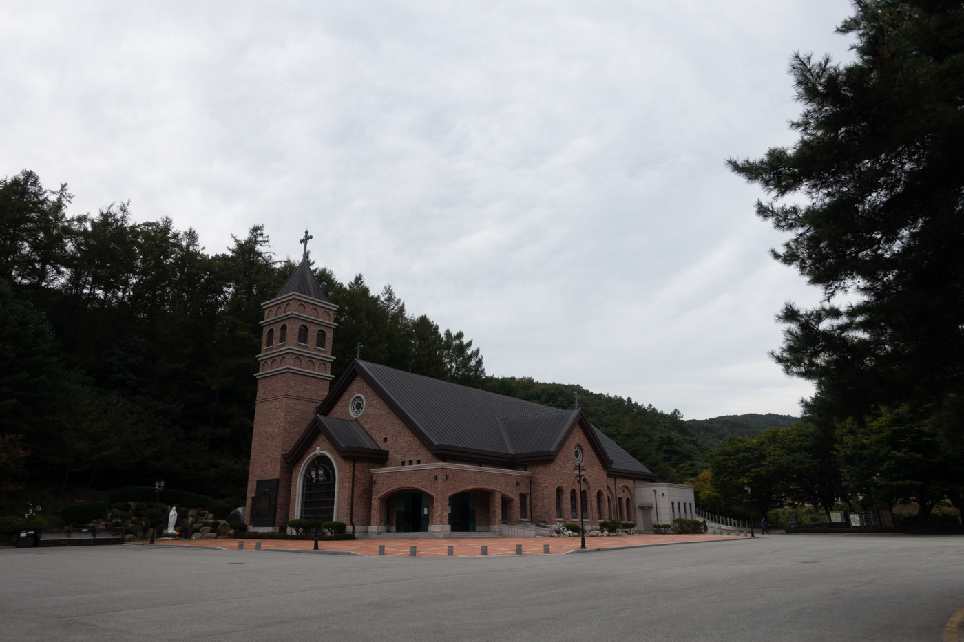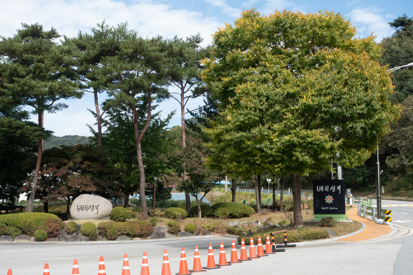 코로나 영향으로 달라진 것들이 많다 . 성당 진입로는 촘촘히 라바콘을 세워 차량을 통제 한다. 옆 쪽 주차장만 이용이 가능했다.