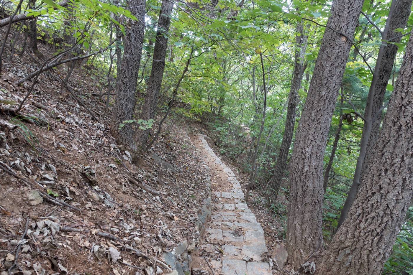 산상제대를 지나면서 경사가 가파른 길이 오랫동안 지속된다.