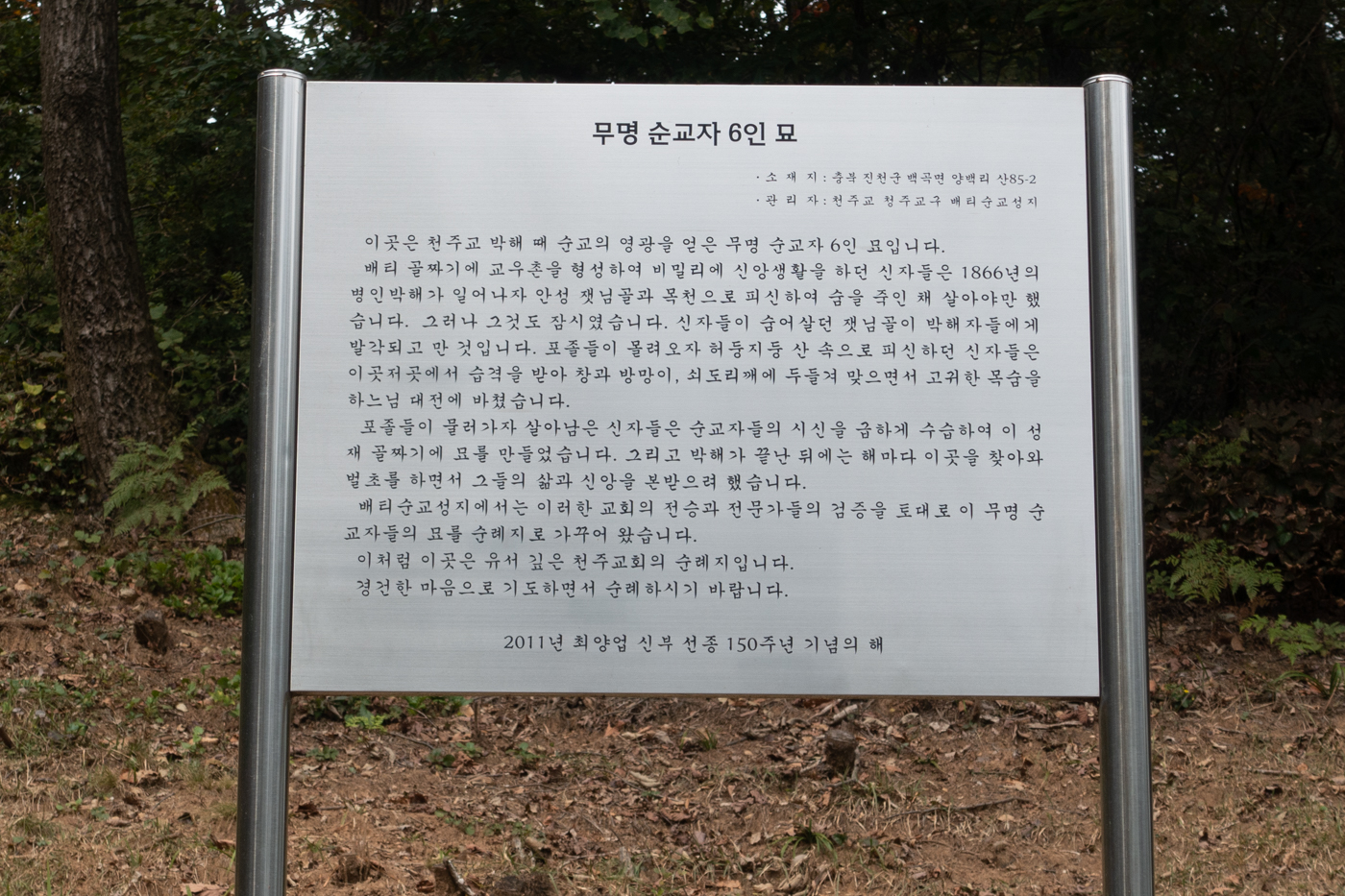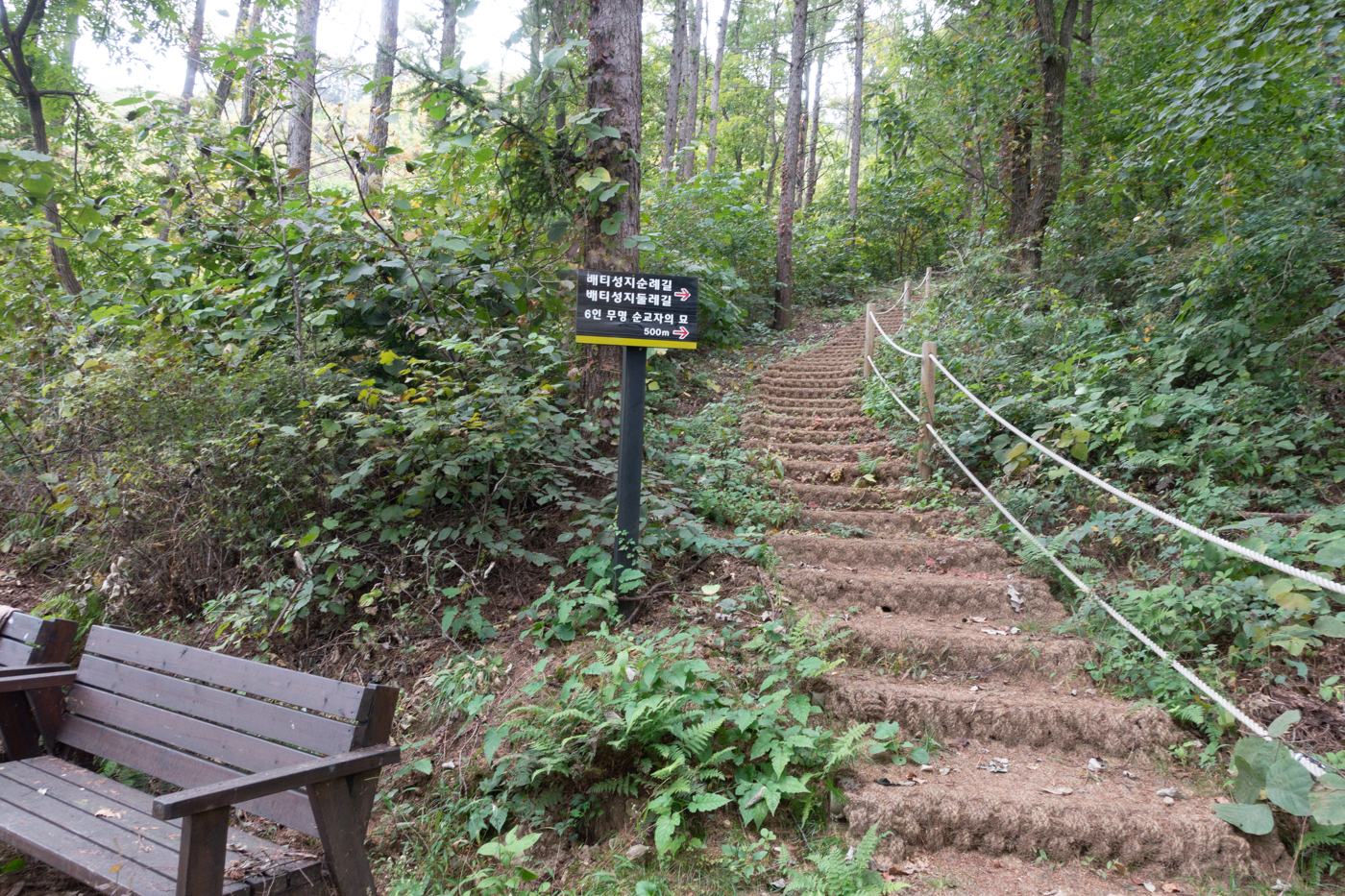 무명순교자 6인 묘 아래로 난 계단이 순례길이다.