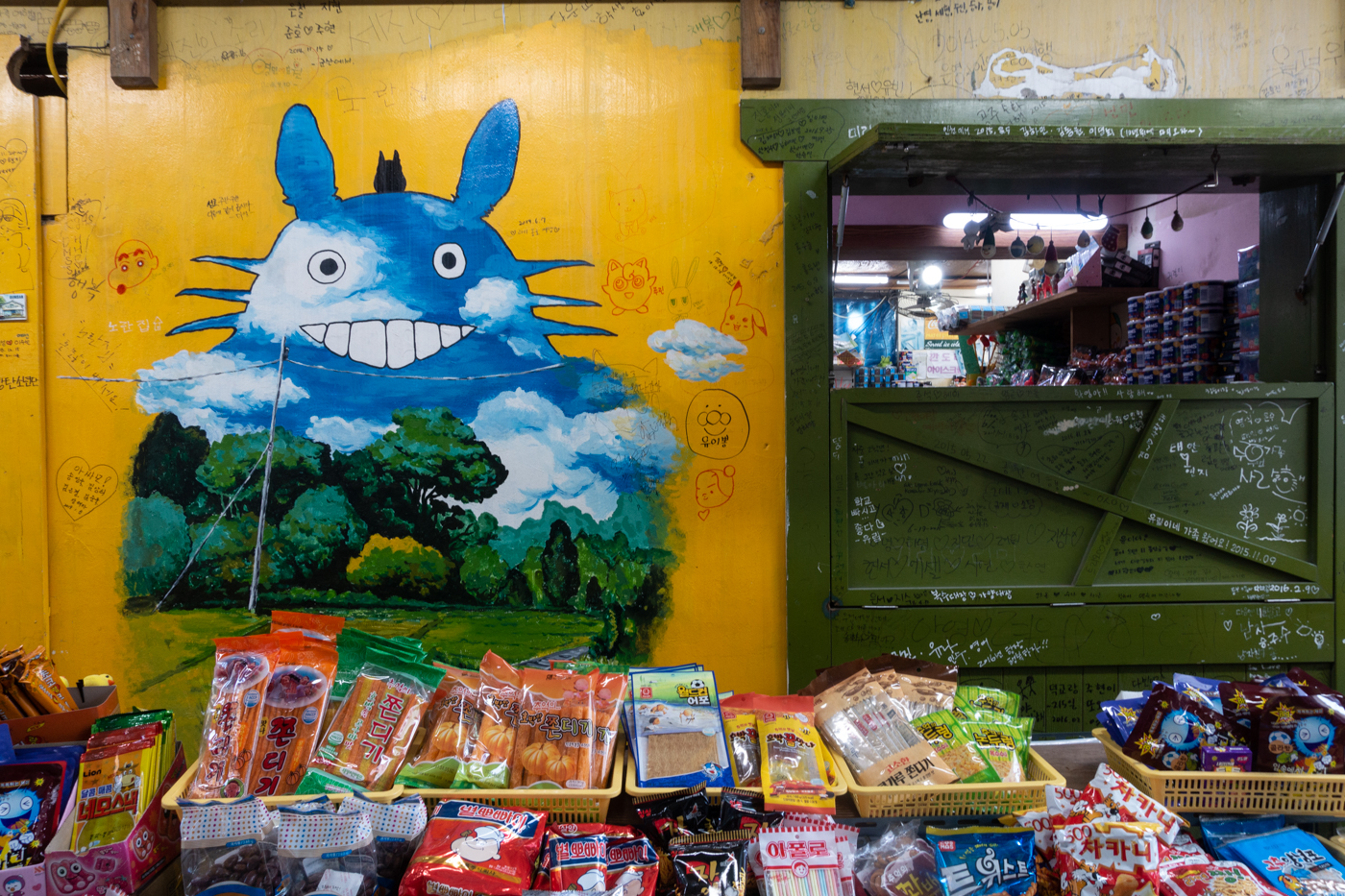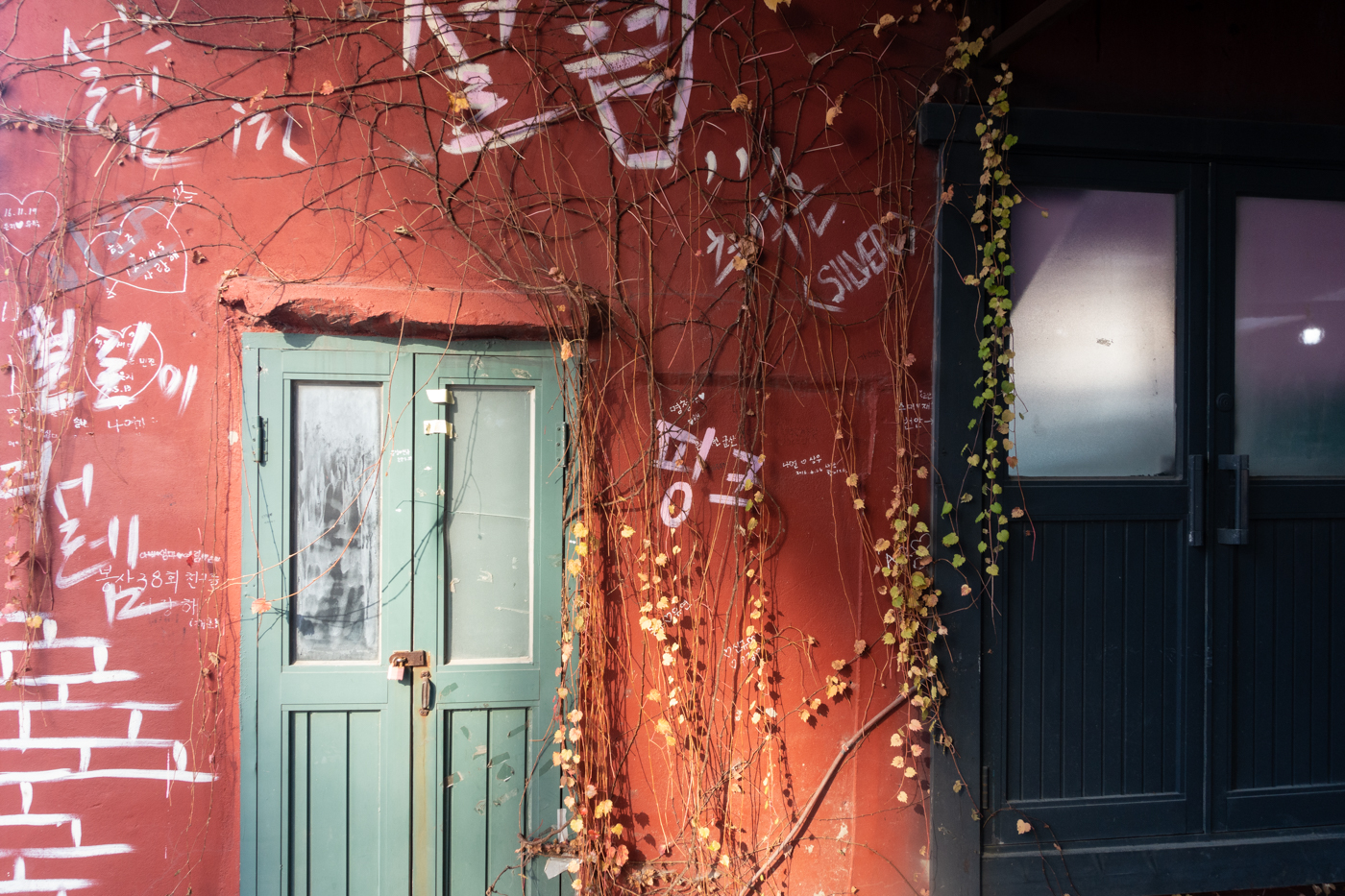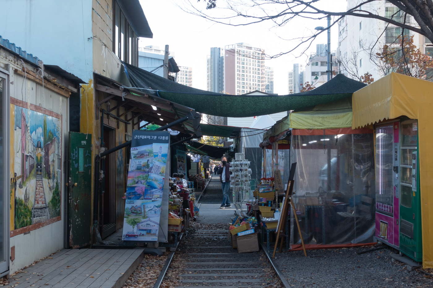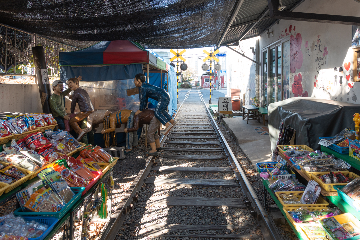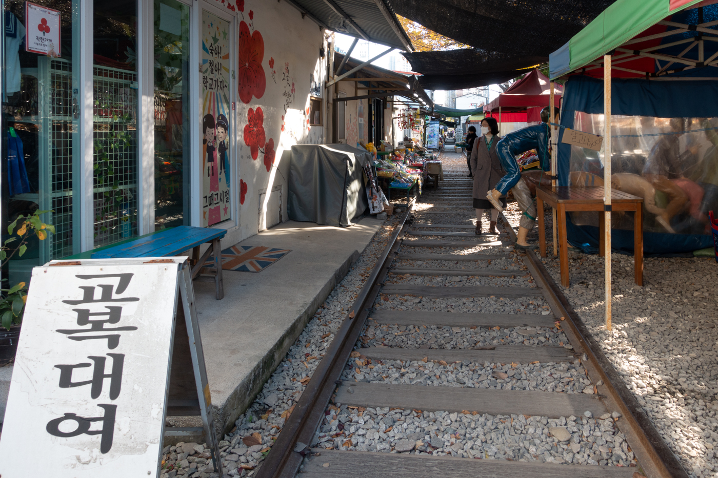 집사람과 함께 옛 향수를 불러 일으키는 철길 옆 다양한 점포들 사이를 거닐며