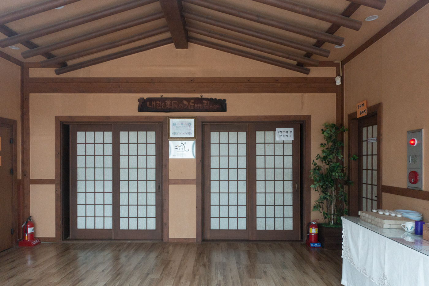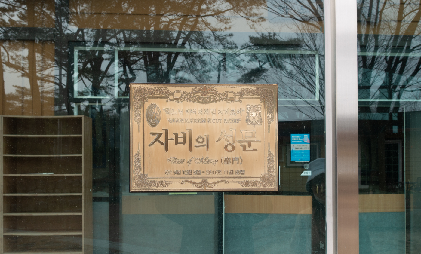 성전문이 잠겨져 있어 유리창을 통해 안을 들여다 봤다.