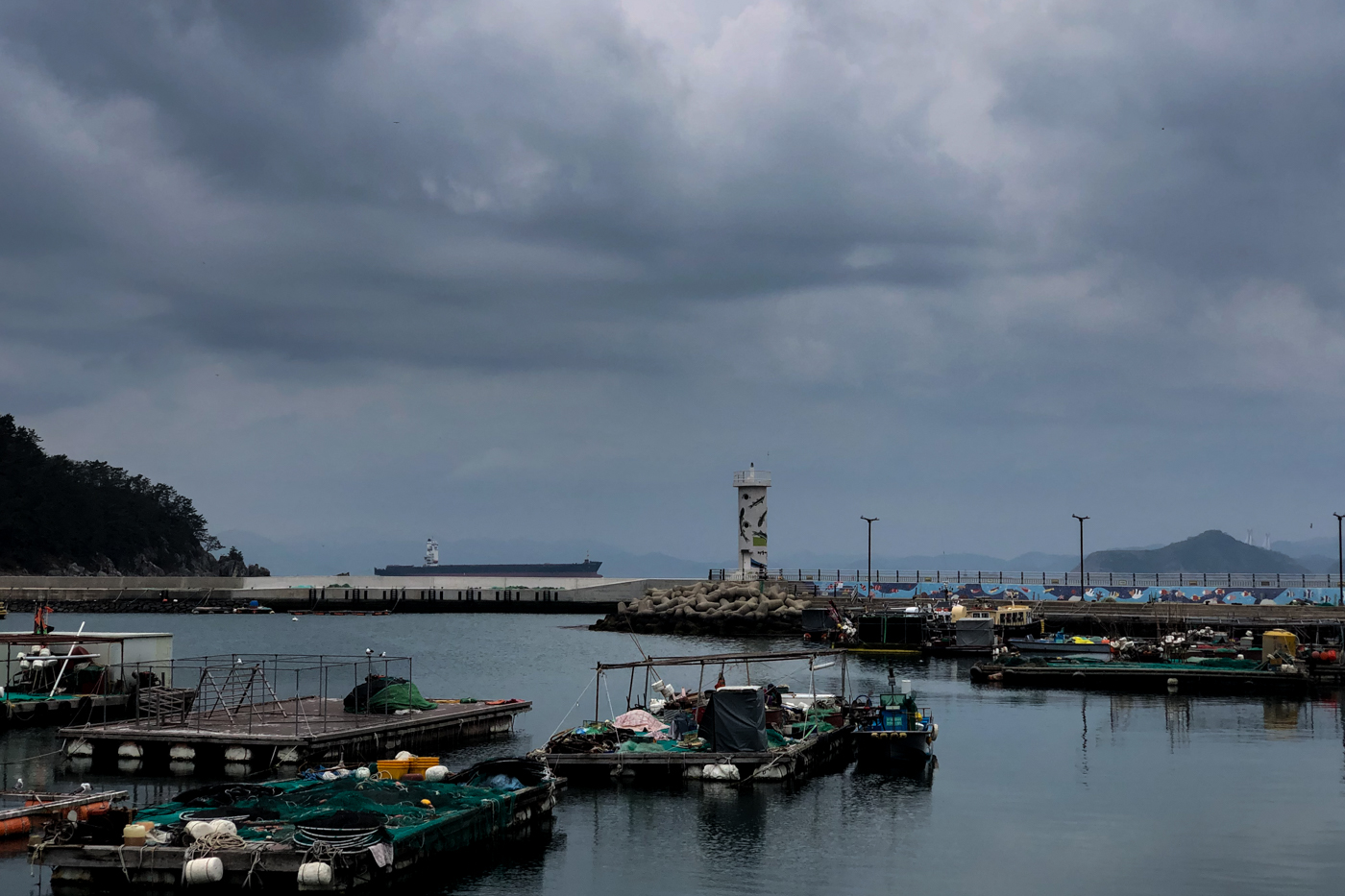 항구에서 바라본 바다의 하늘은 금방이라도 비가 퍼부울것 처럼 가까운 곳이 더 어둡고 무겁다.