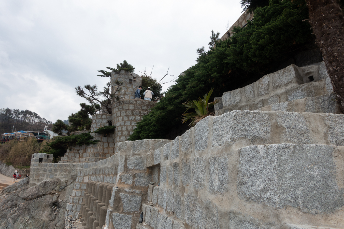 바닷가 근처에 네모반듯한 돌을 쌓고 시멘트로 메우길 반복한 것이