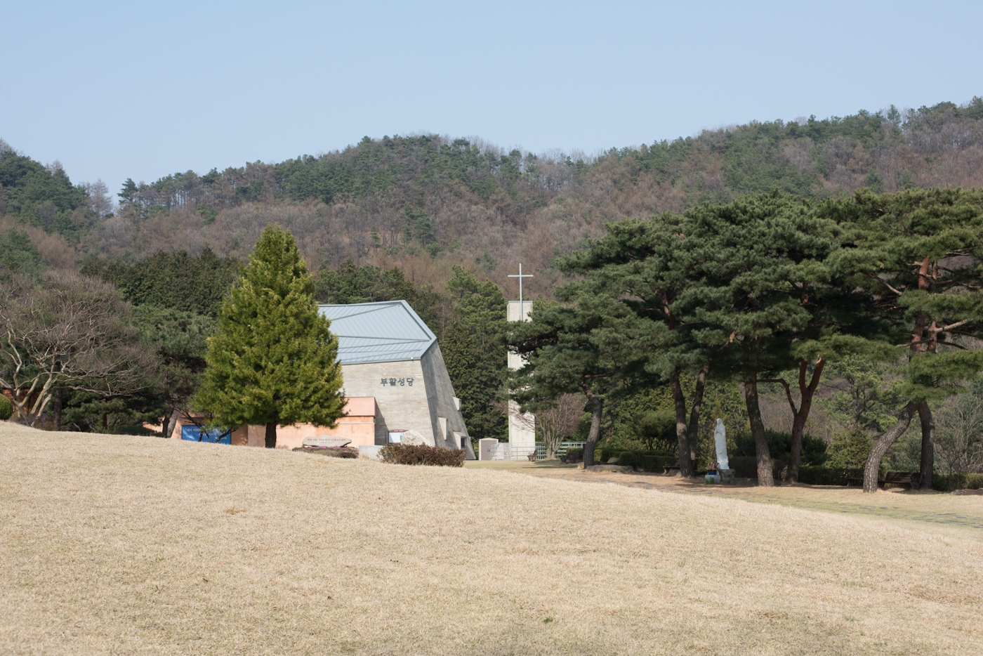 성당과 봉안경당 사이 언덕에 길을 내어 조성된 십자가의 길