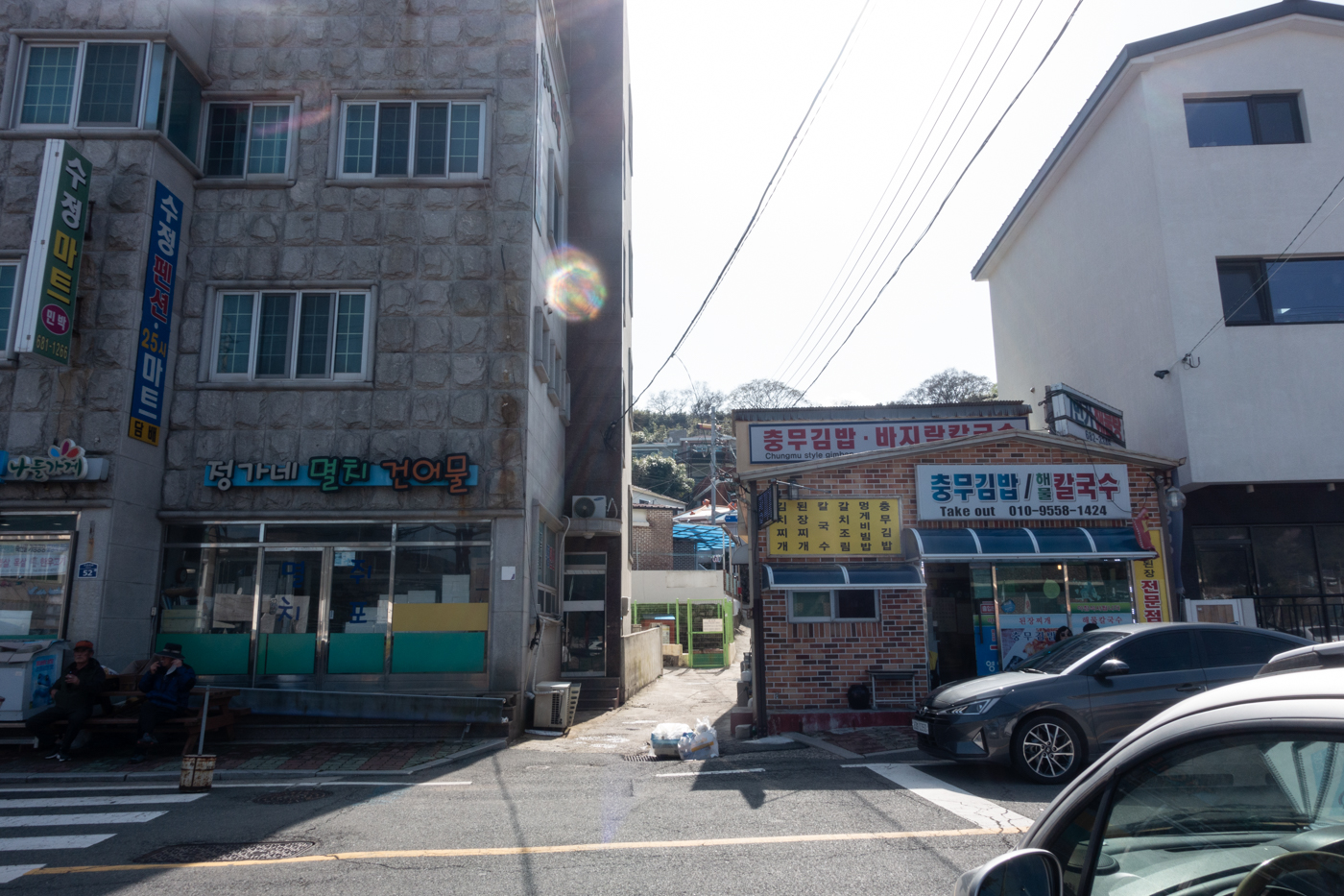 구조라 수정 경로당 근처 공영주차장(주차비 없음)에 차를 주차하곤 도로를 건너
