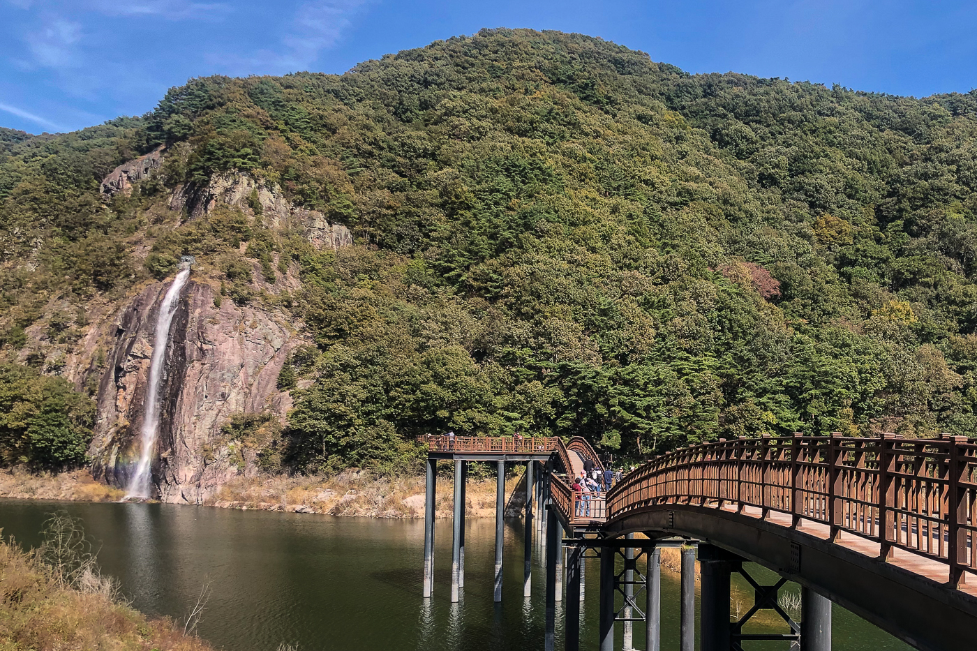 나무다리 왼편에 있는 인공 폭포도 멋들어진다.