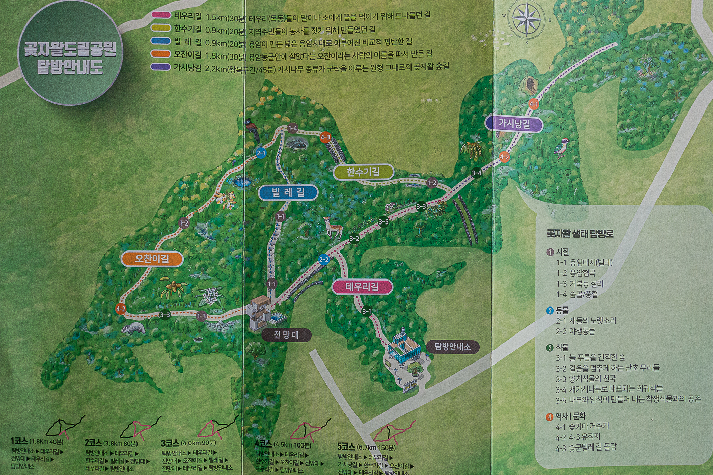곶자왈도립공원 탐방길은 5코스가 있는데