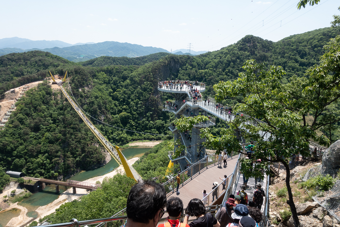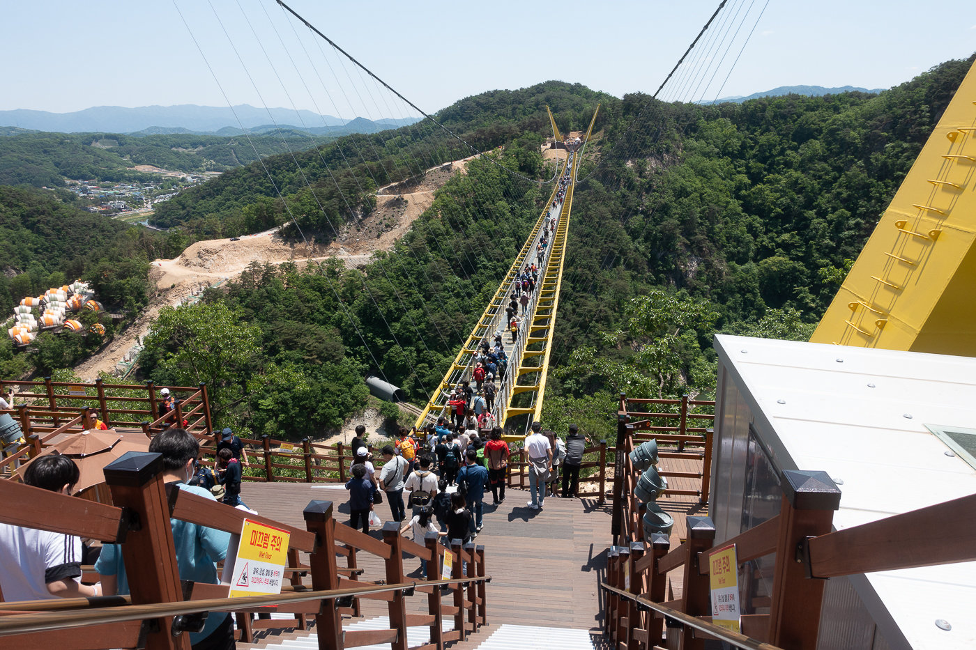 출렁다리에서 바라본 울렁다리, 노란색이다. 파랑과 노랑의 조합은 불현듯 우크라이나 국기를 연상시켰다.