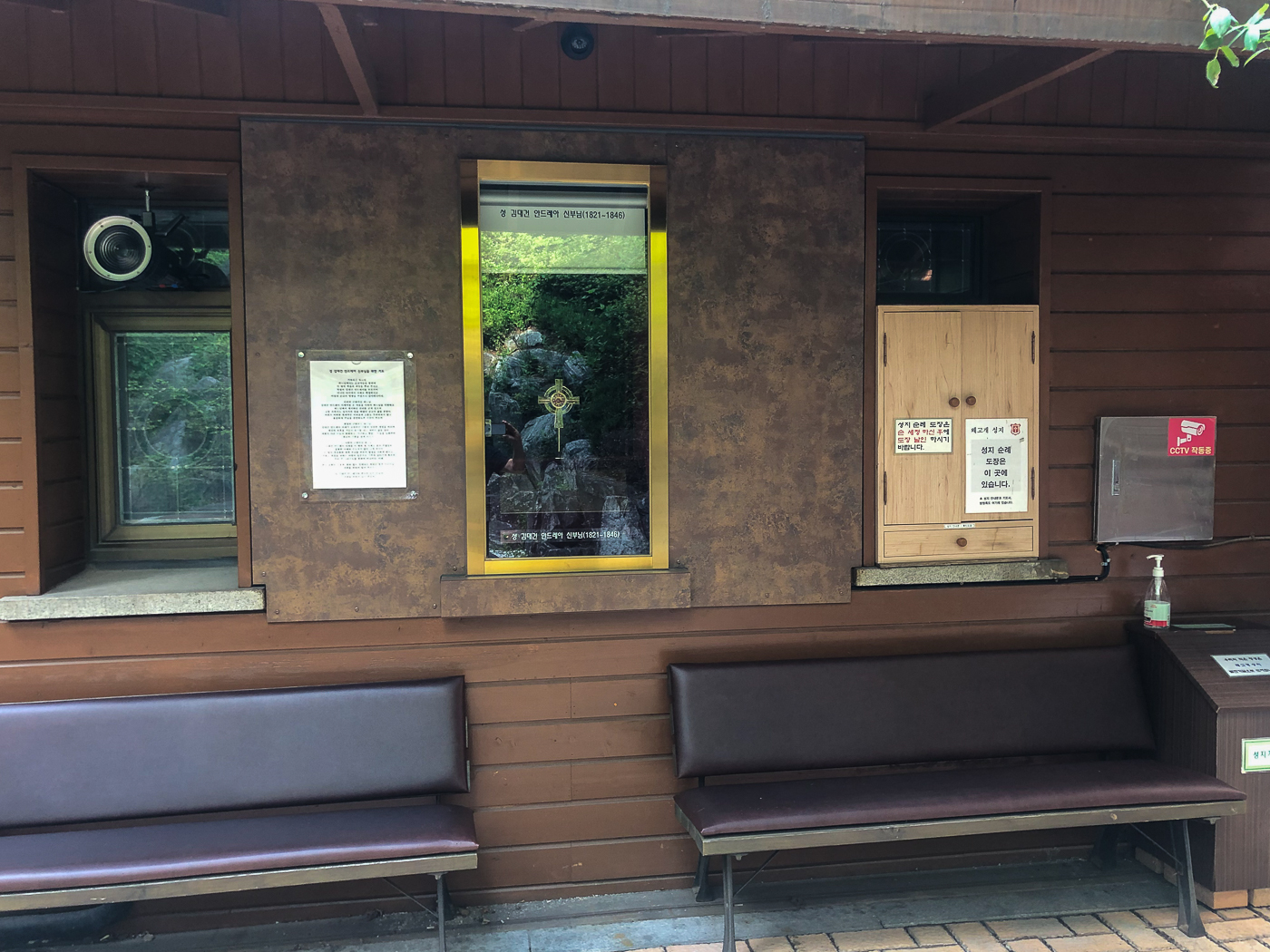 성지에 들어서자마자 우측으로 김대건 신부님 유해가 모셔져 있고 성지순례 도장도 비치해 두었다.