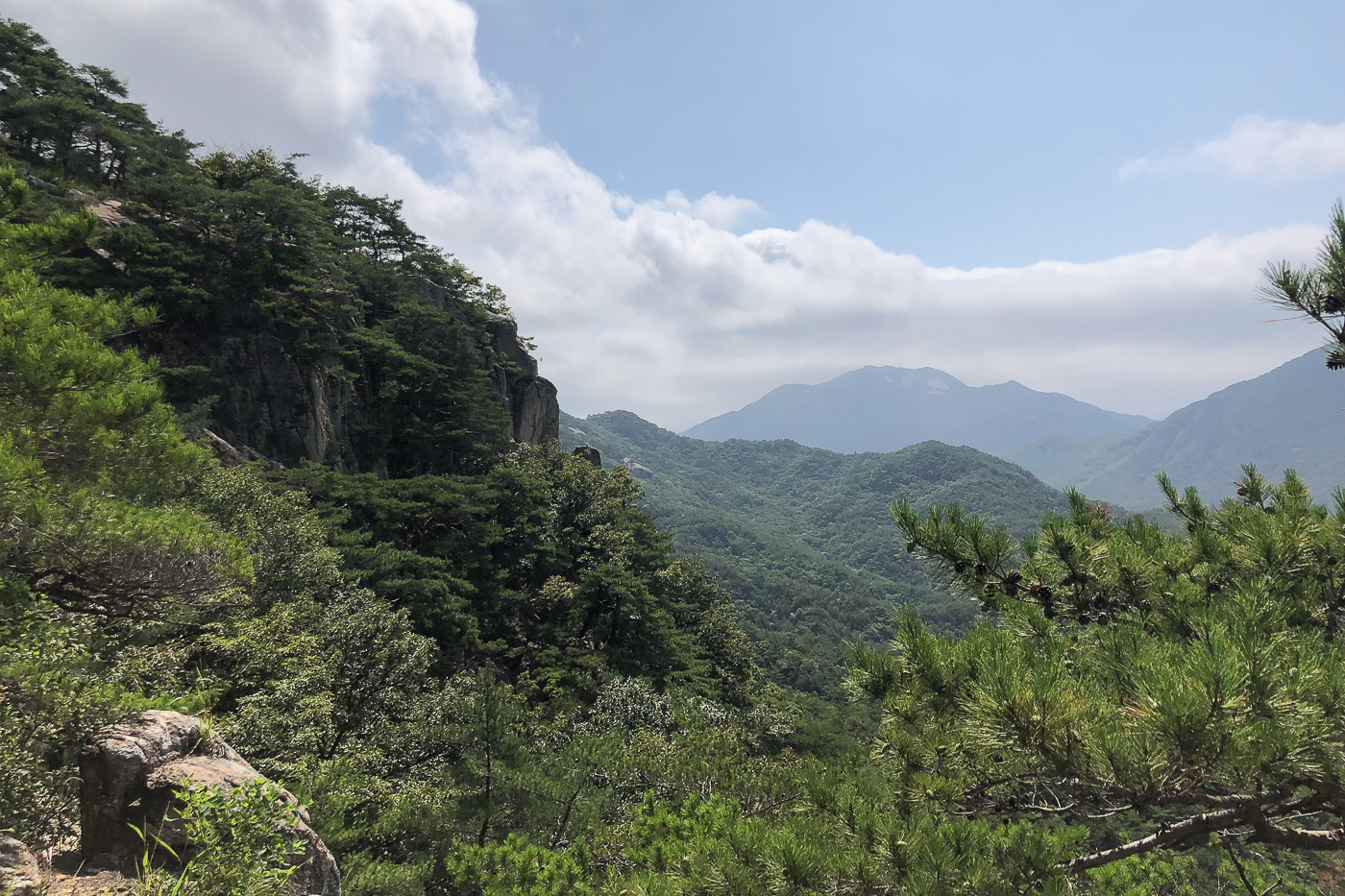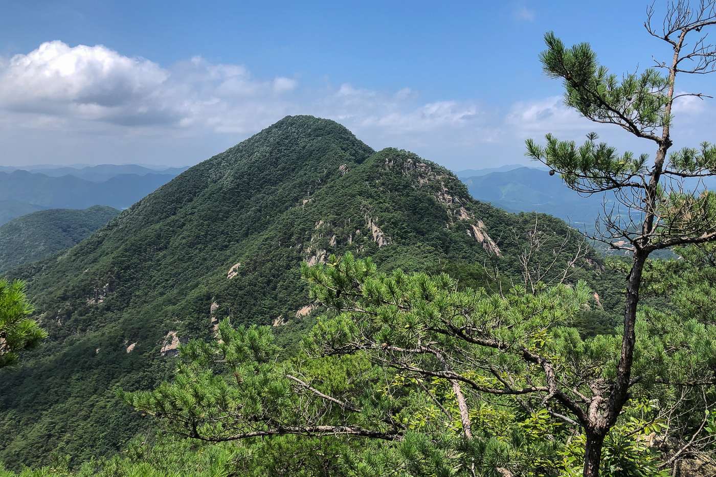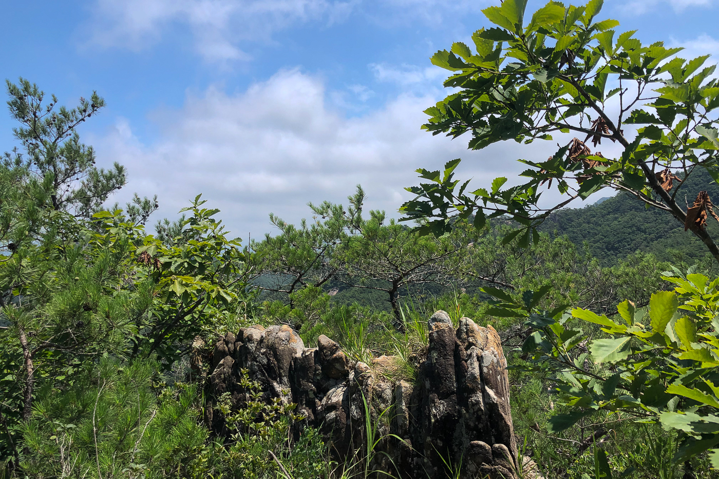 산 양쪽이 막혀 바람도 없고 조망도 없이 30여분을 지루하게 오르다 우측으로 확 트인 정경과 마주했다