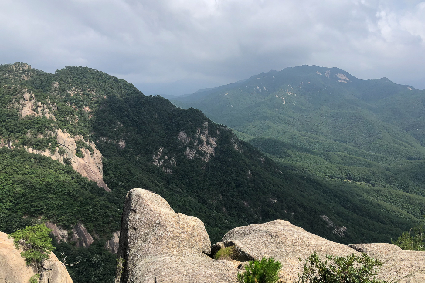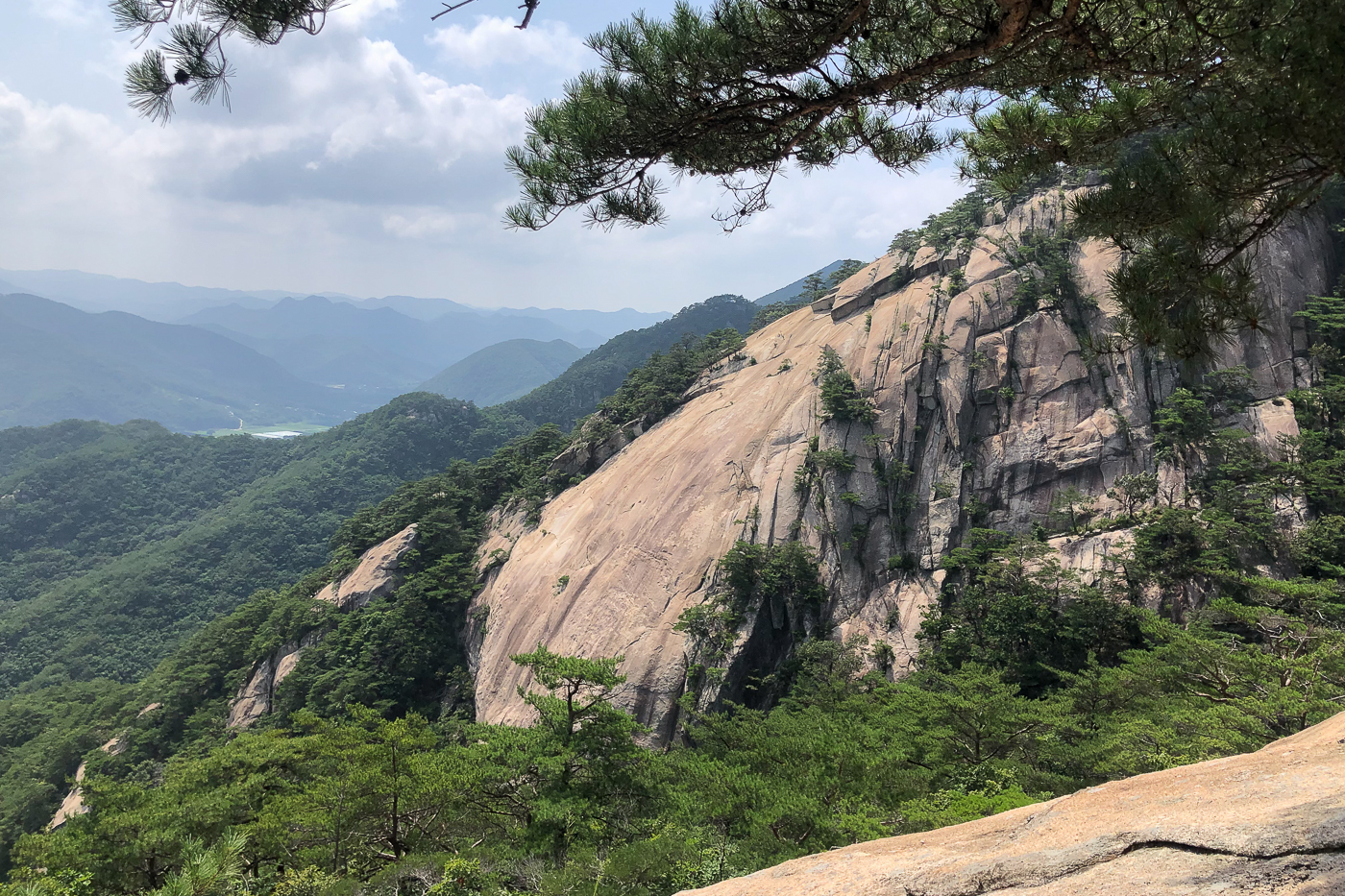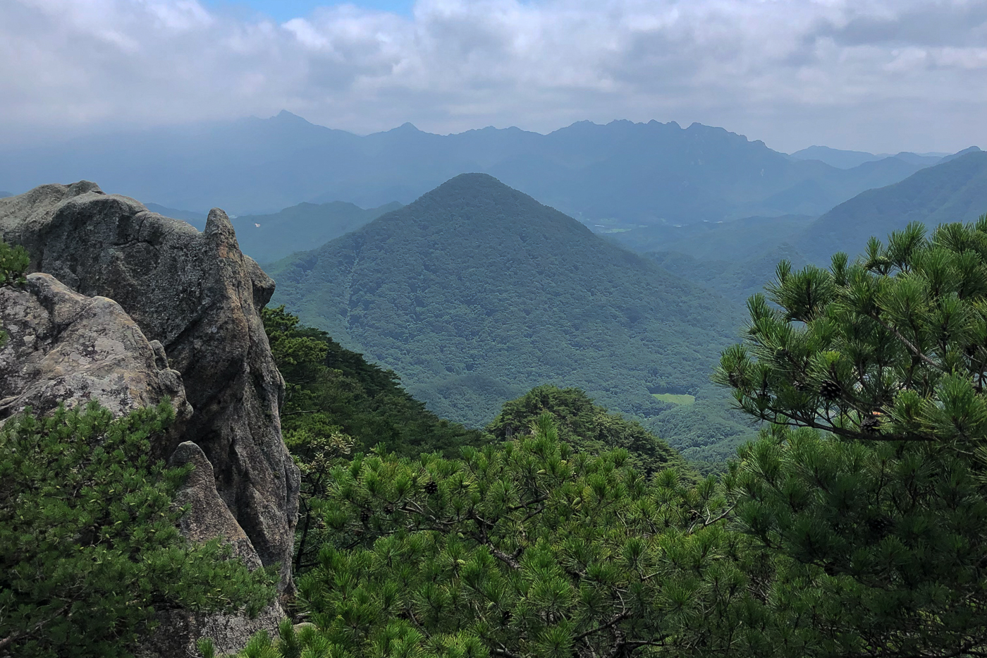 산 양쪽이 막혀 바람도 없고 조망도 없이 30여분을 지루하게 오르다 우측으로 확 트인 정경과 마주했다
