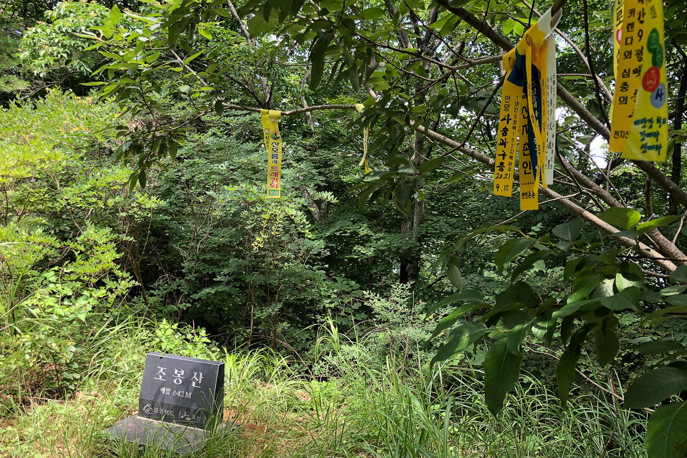 조봉산 정상의 모습, 정상석에는 높이가 642m로 표기되어 있는데 실제 높이는 687m라 한다.