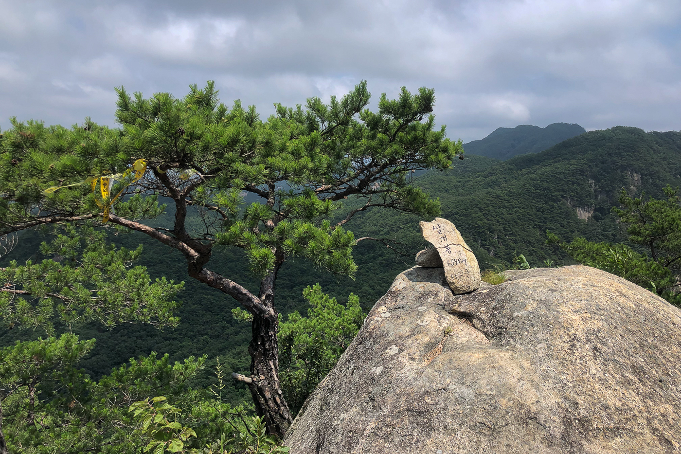 쌀개봉 정상석(659.8m)이 앙증스럽다.