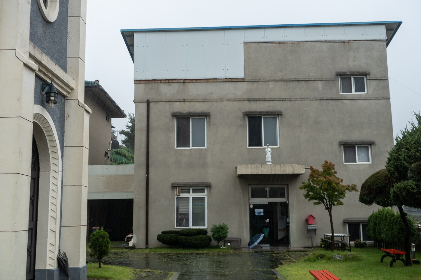 정면 건물이 사무실이고 좌측편에 성당 입구가 있다.