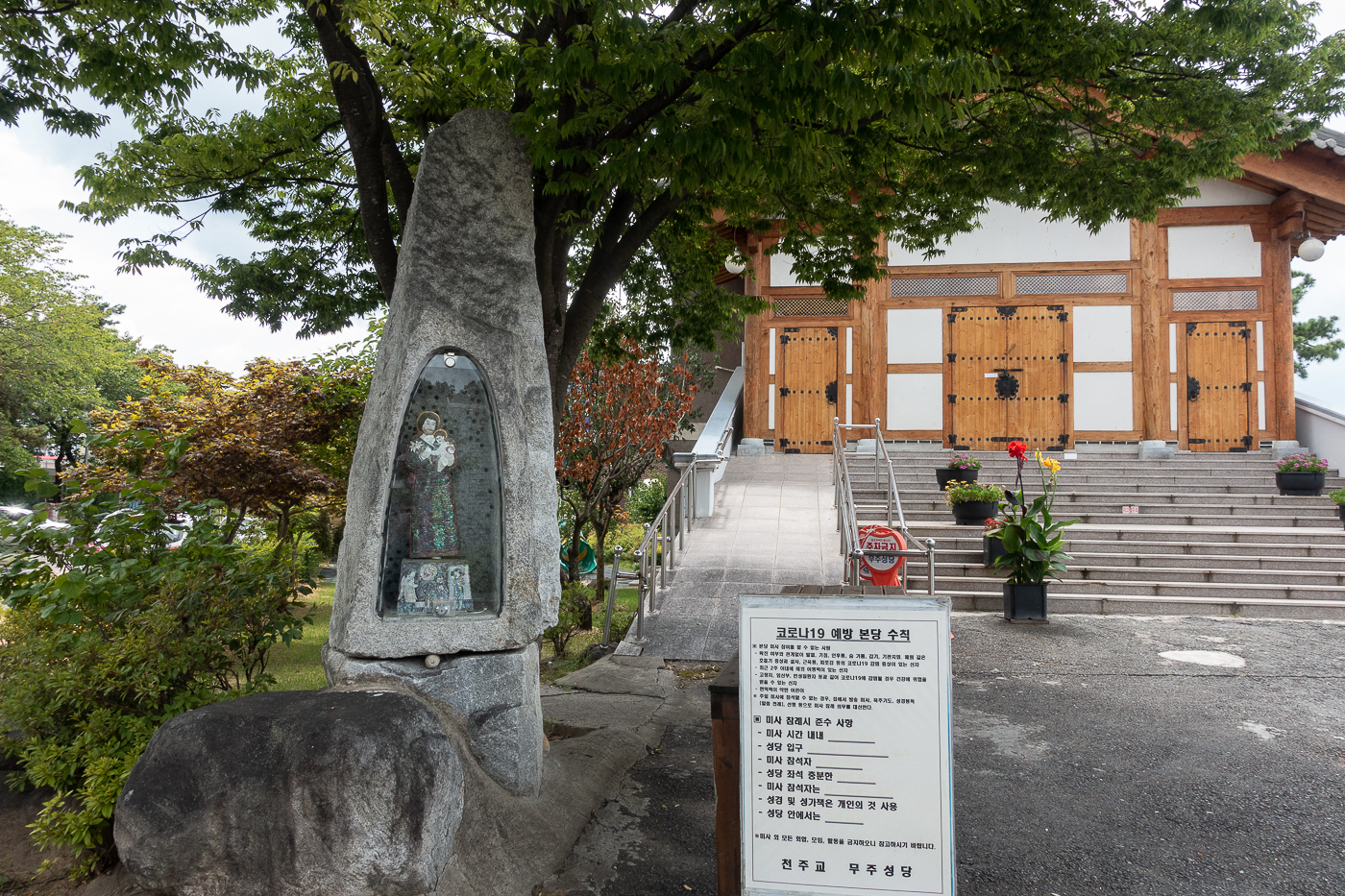 성전 입구를 한옥 형식으로 리모델링 한 2층 건물이며 성전은 2층에 있는 듯 했다.
