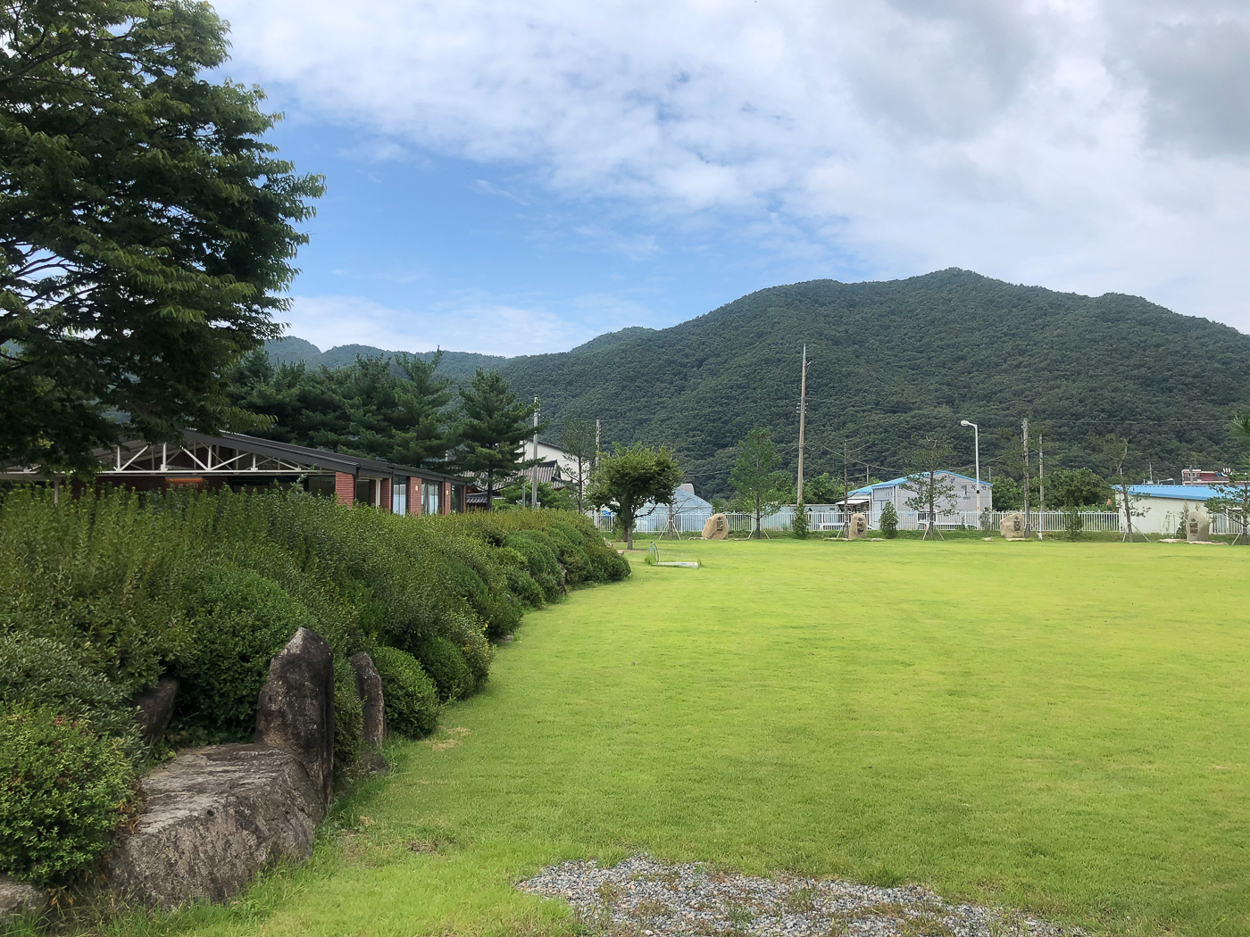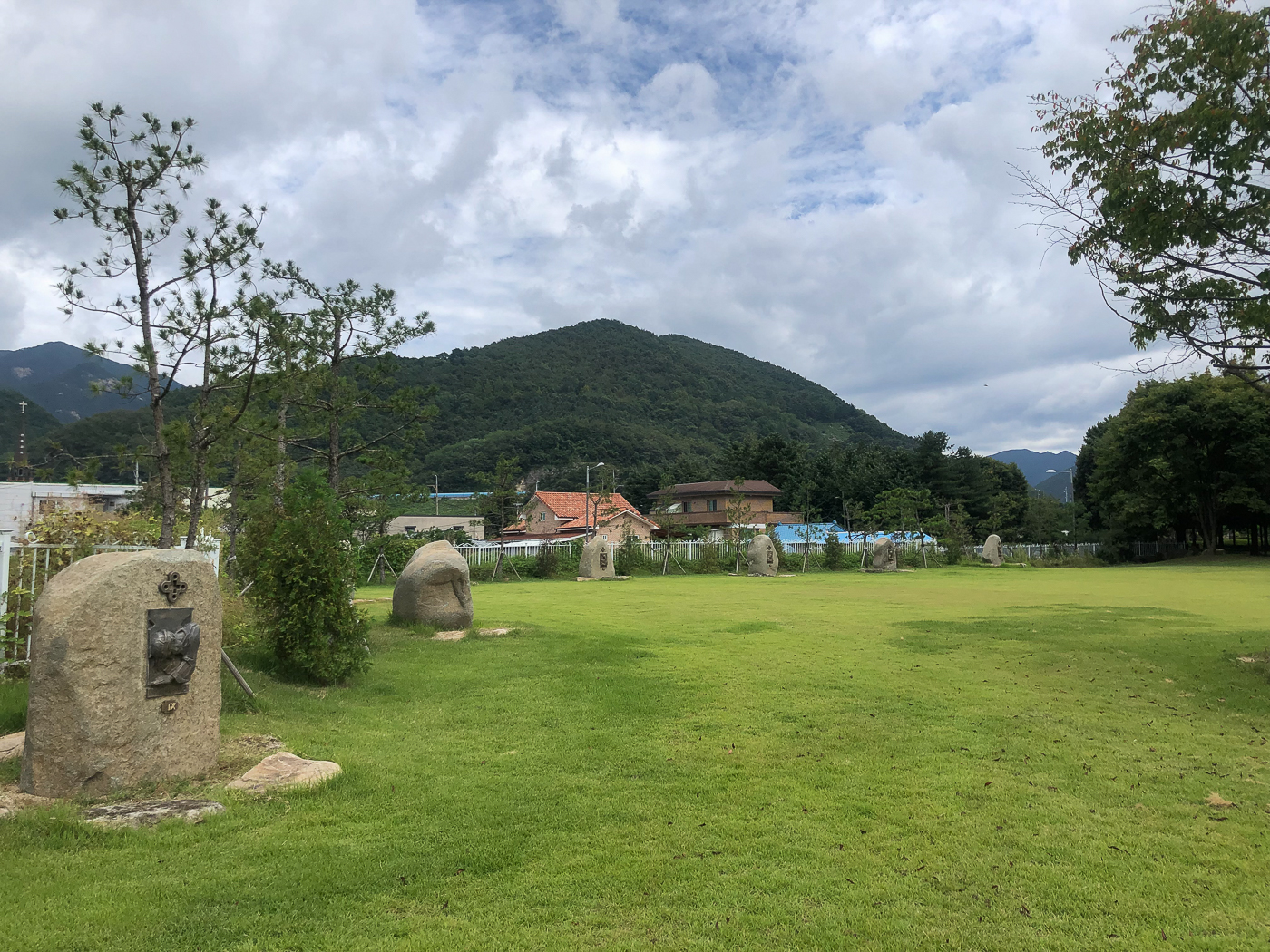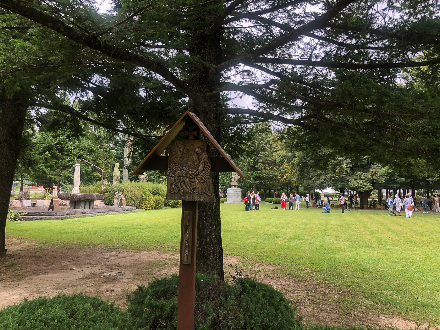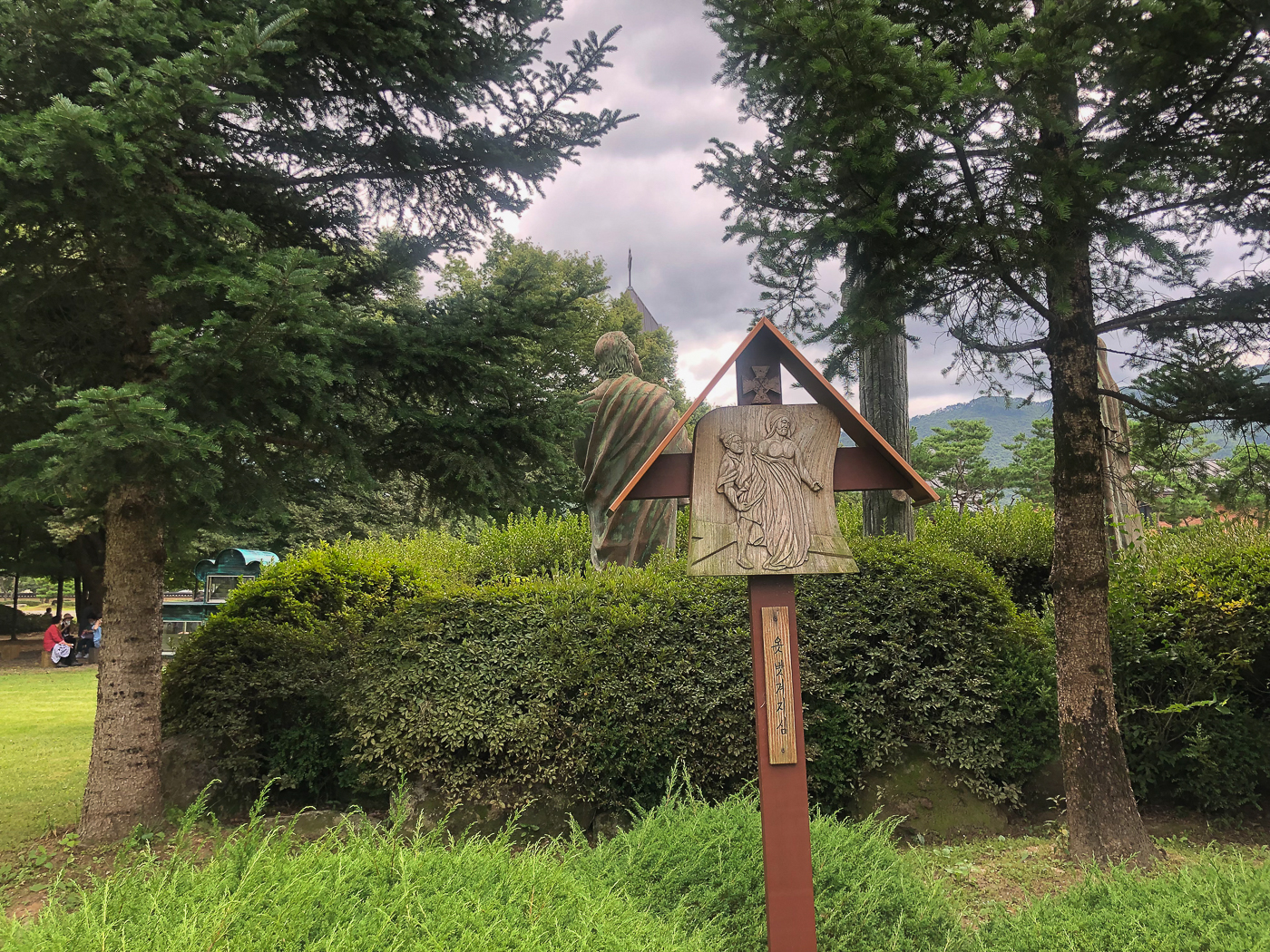 그 앞으로 넓게 조성된 잔디밭 둘레로 십자가의 길이 새로 만들어져 있었다.