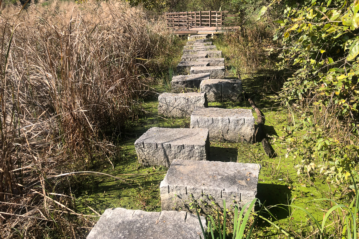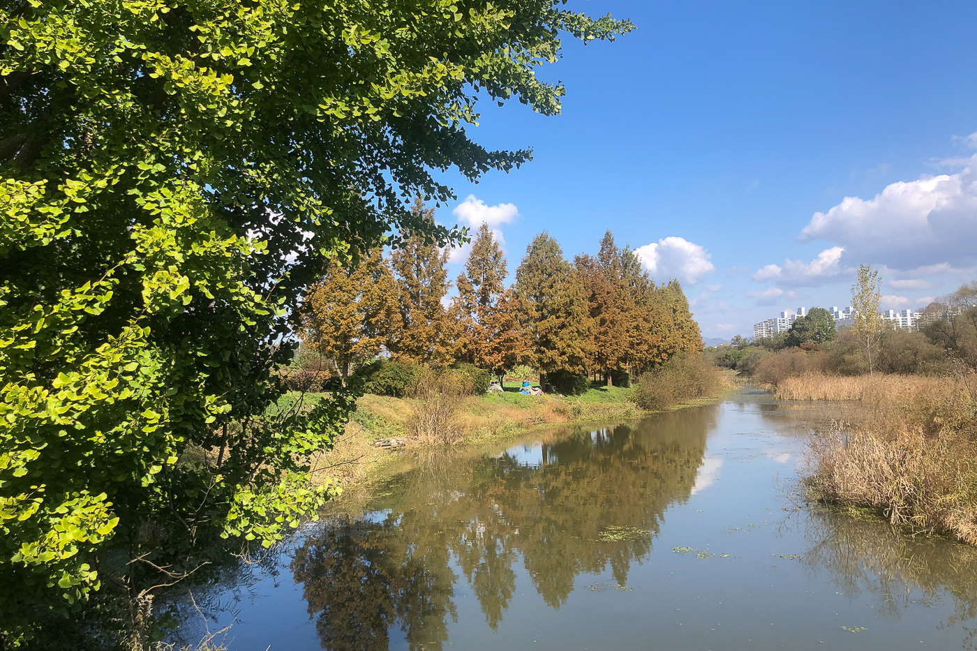 초입 쪽에 가까운 팔각정자와 중간쯤 버들섬에 휴식공간이 있고