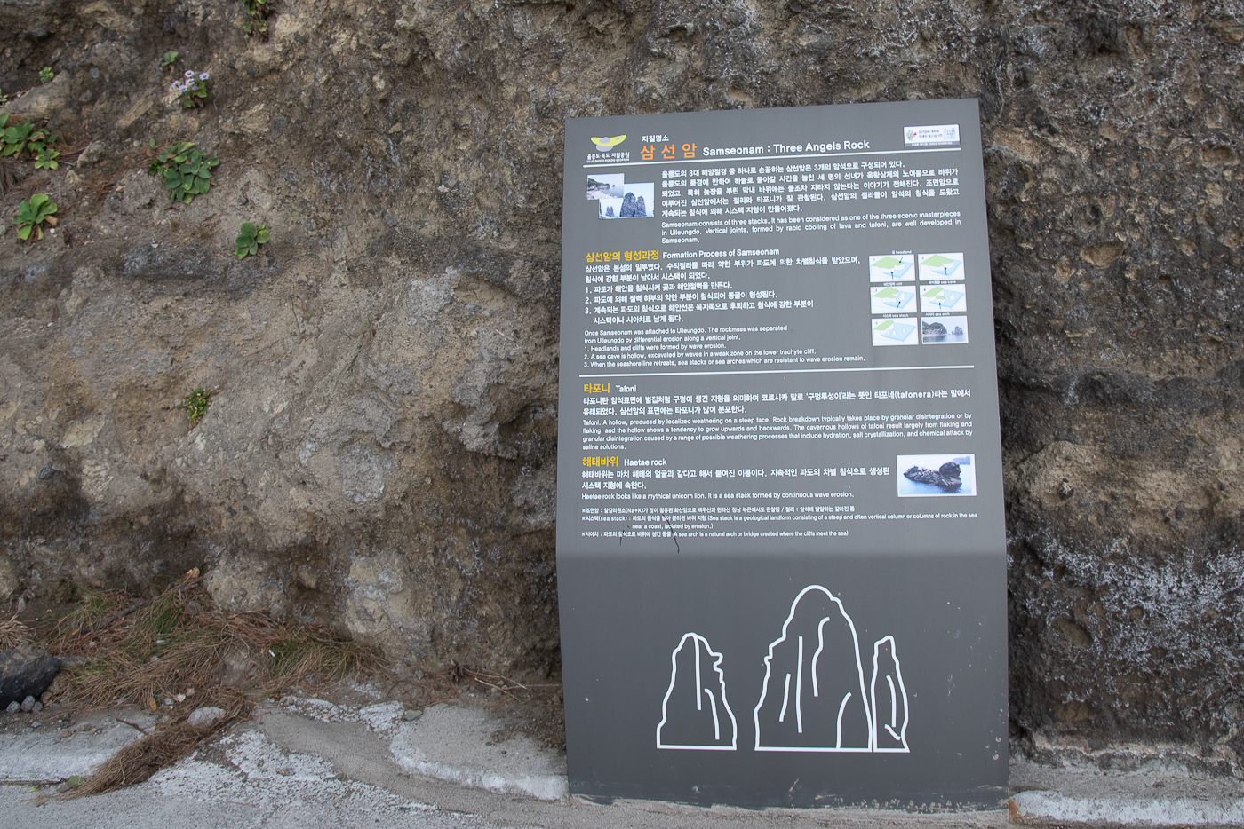 울릉도의 3대 해양 절경중 하나로 손꼽히는, 3개의 암석으로 구성된 '삼선암'의 모습니다.