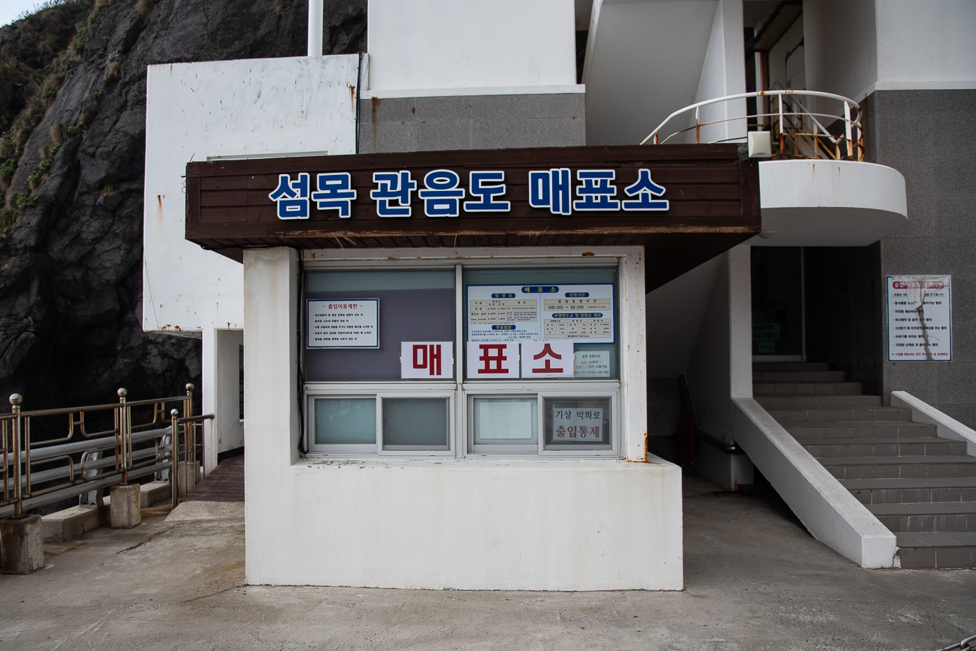 섬목.관음도 매표소다. 기상 악화로 출입이 통제되고 있다.
