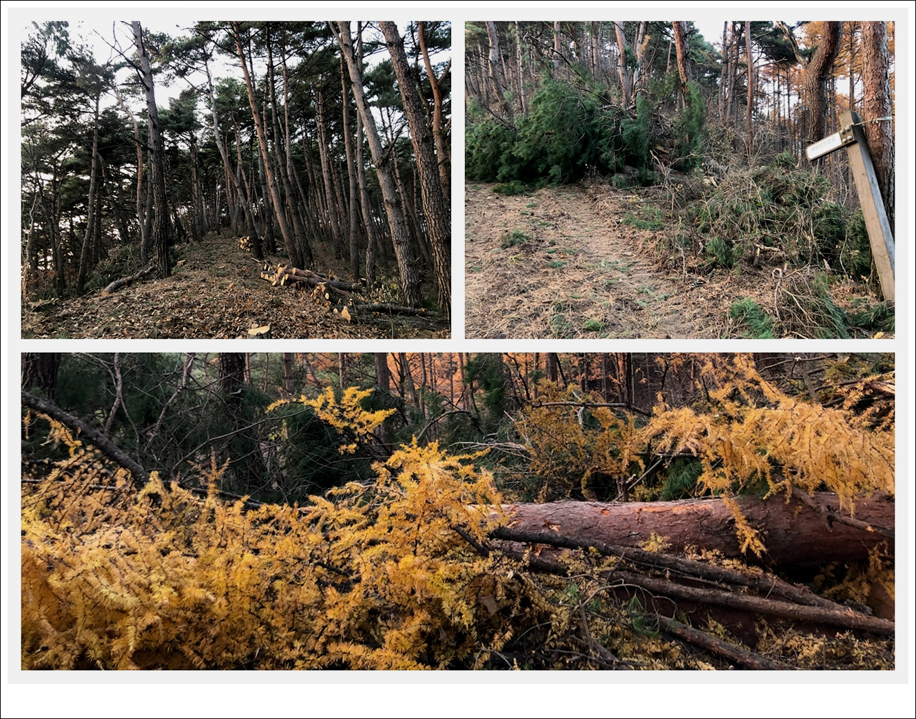 주변 임로(林路)공사로 인한 벌목등이 진행되고 있기 때문인 것 같다. -등산로가 없다고 보면 된다.-