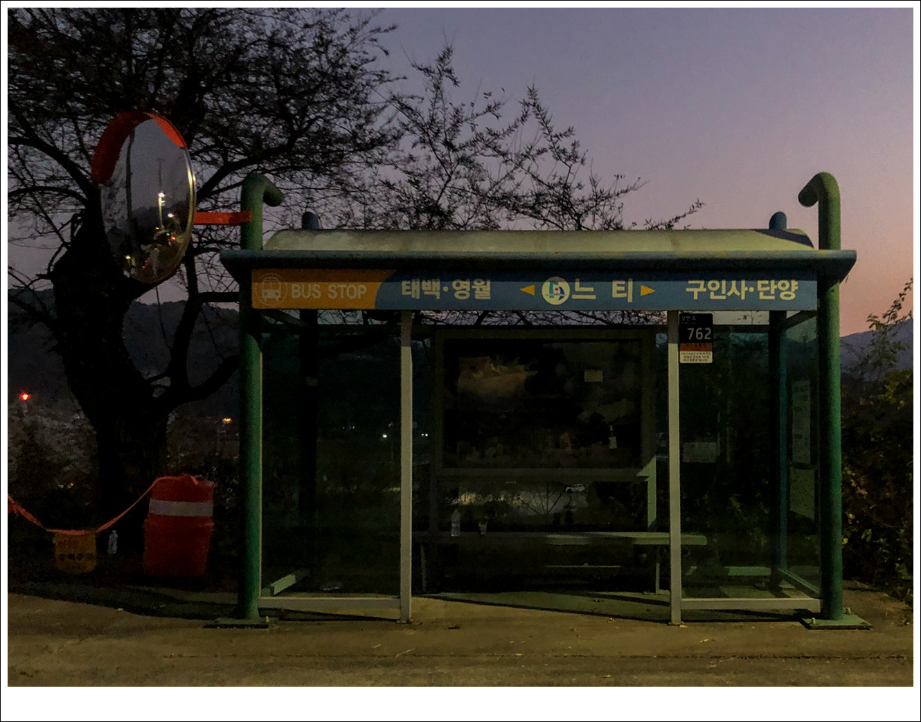 버스는 6시47분에 도착했고 19시가 조금 안된 시간에 고씨굴 정류소에 내리면서 산행을 마감했다.
