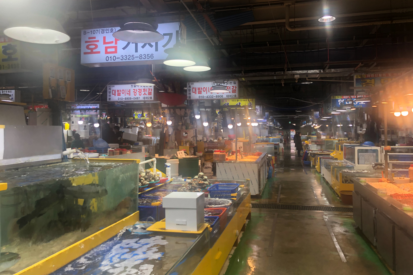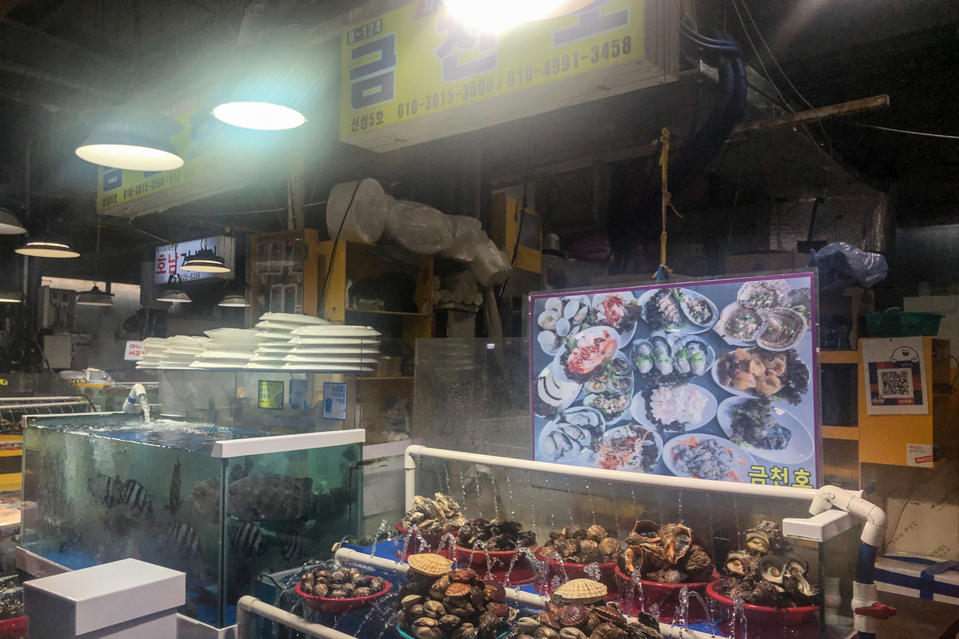 방금 회를 뜬 방어와 그 옆 수족관에 갇혀있는, 아직은 살아있는 또 다른 방어를 보니 묘한 느낌이 든다.