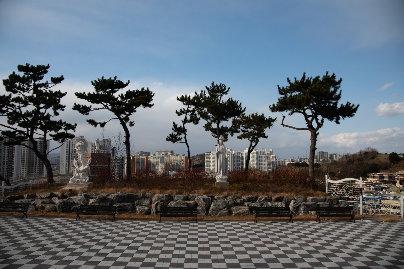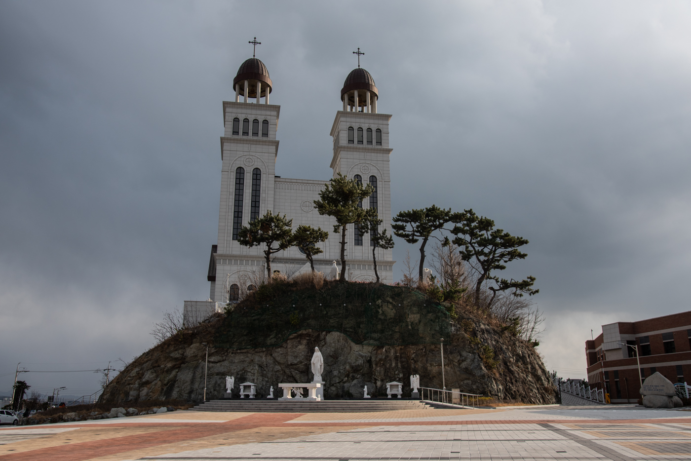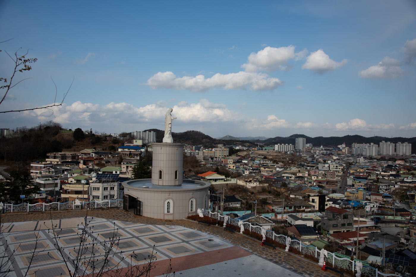 성모광장 앞에 모셔져 있는 성모상과 산정동순교자기념성당