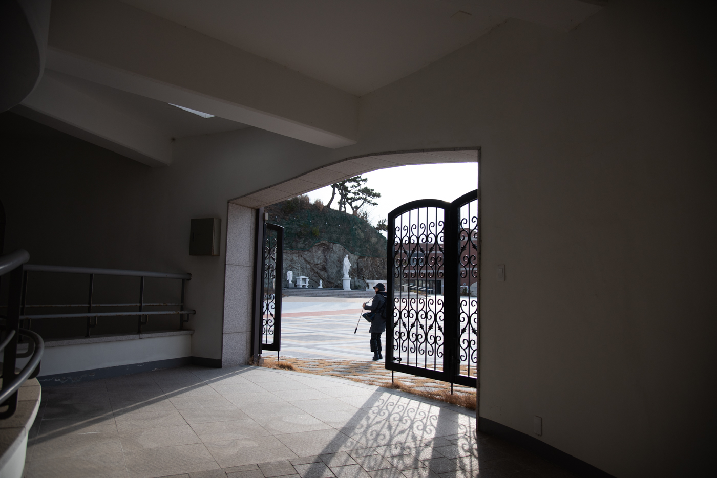 지하1층에서 성당으로 올라가는 입구다. 앞 쪽으로는 순교기념비가 있다.