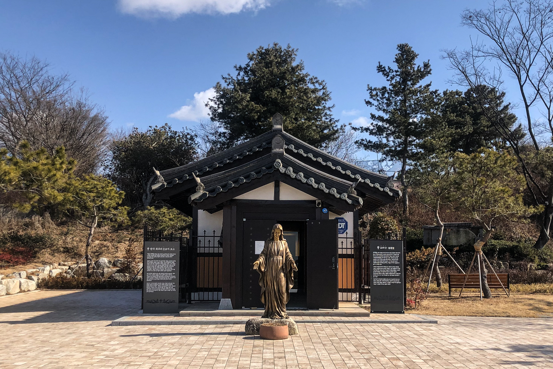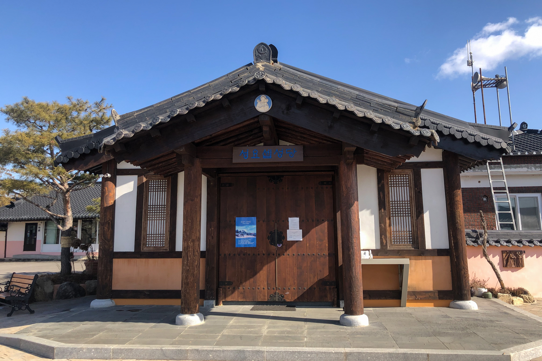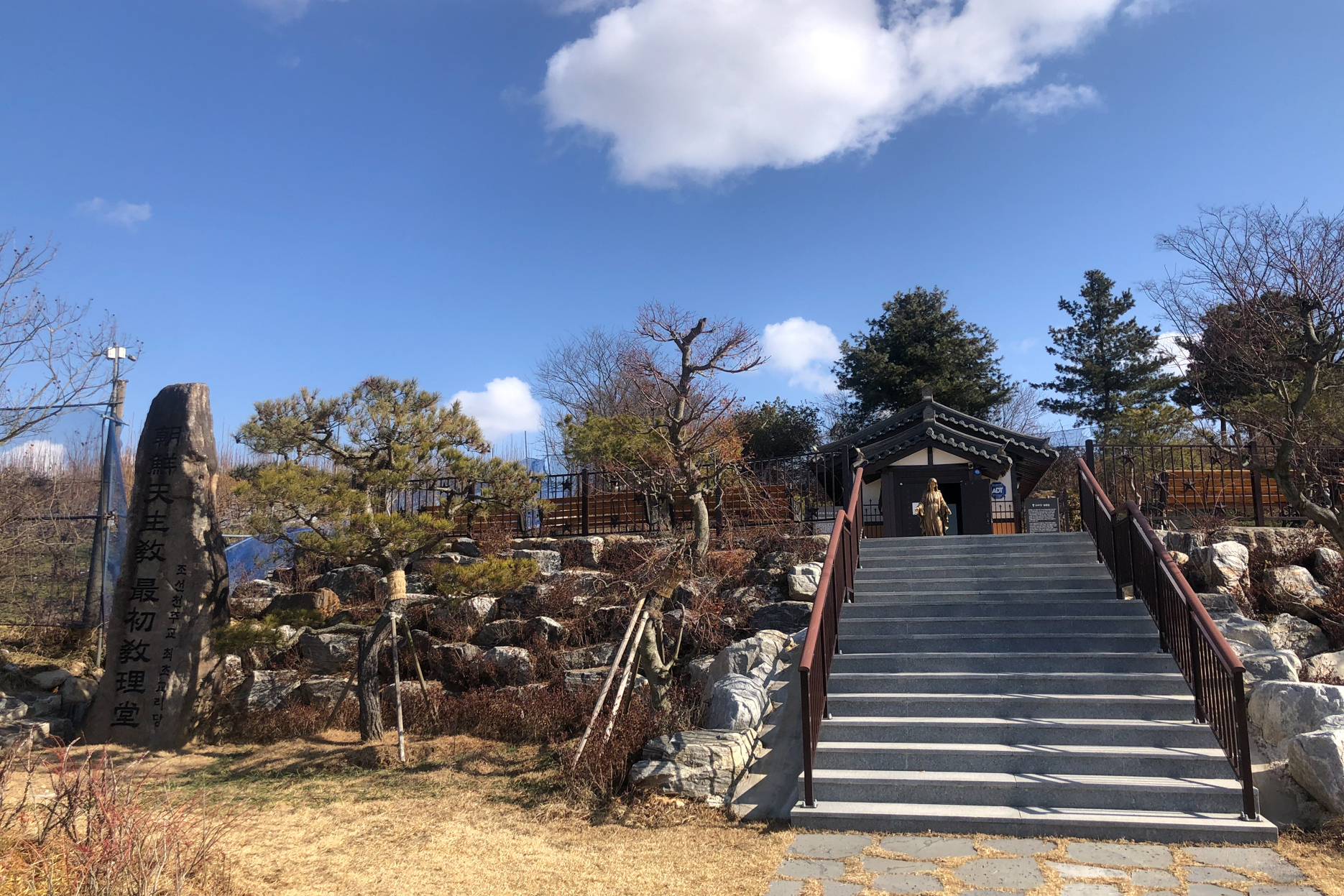 교리당은 교리당터 확인.고증을 통하여 2002년에 한옥모양의 건물을 세우고