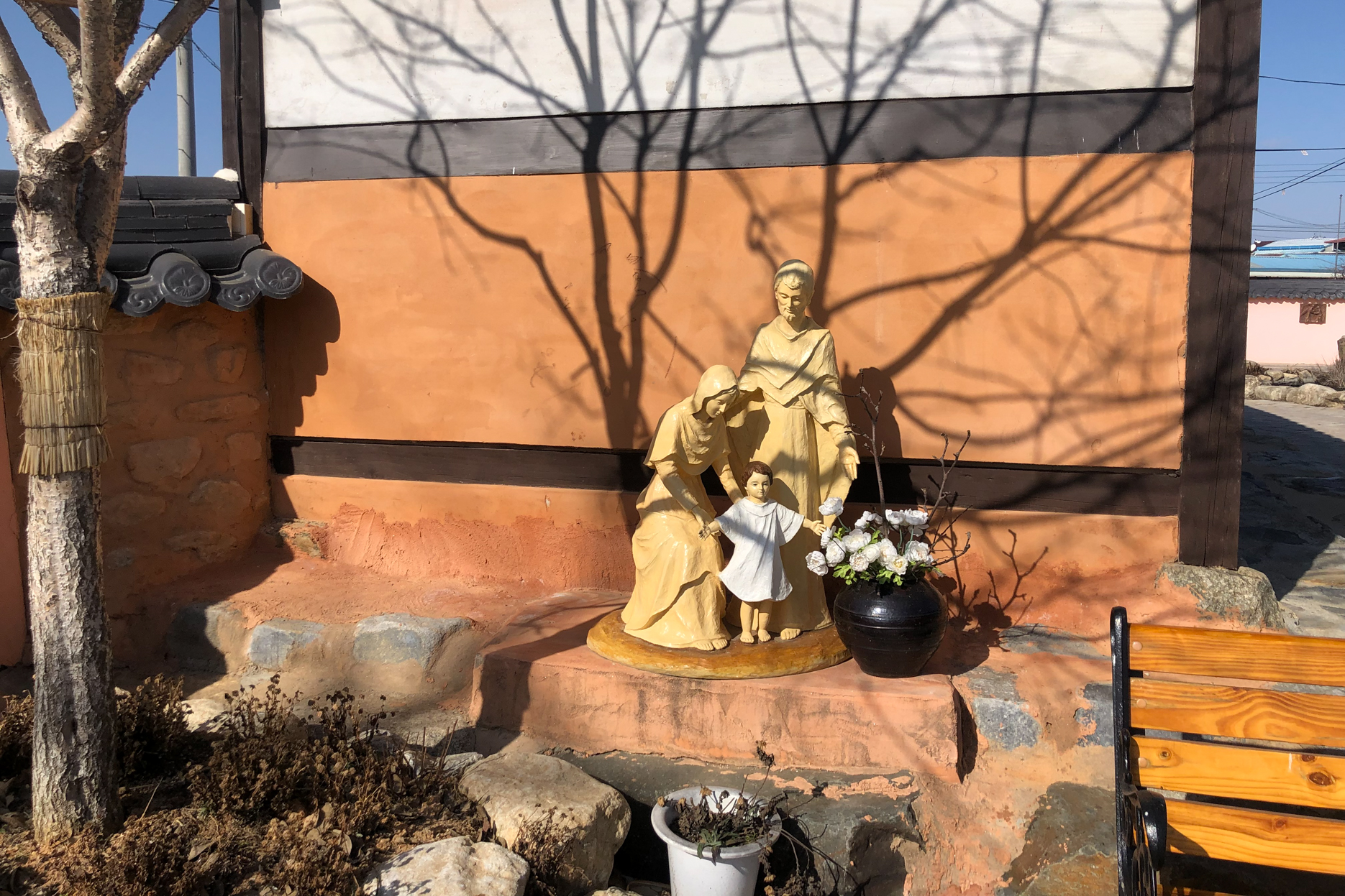 교리당 앞 중앙에는 성모상이 모셔져 있다.