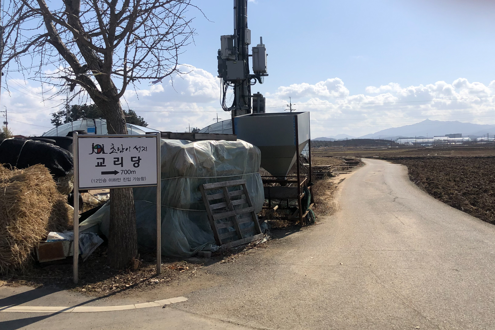 실제로 차 1대만 다닐 수 있는 논 사이로 조성된 좁은 농로 비슷한 도로다.
