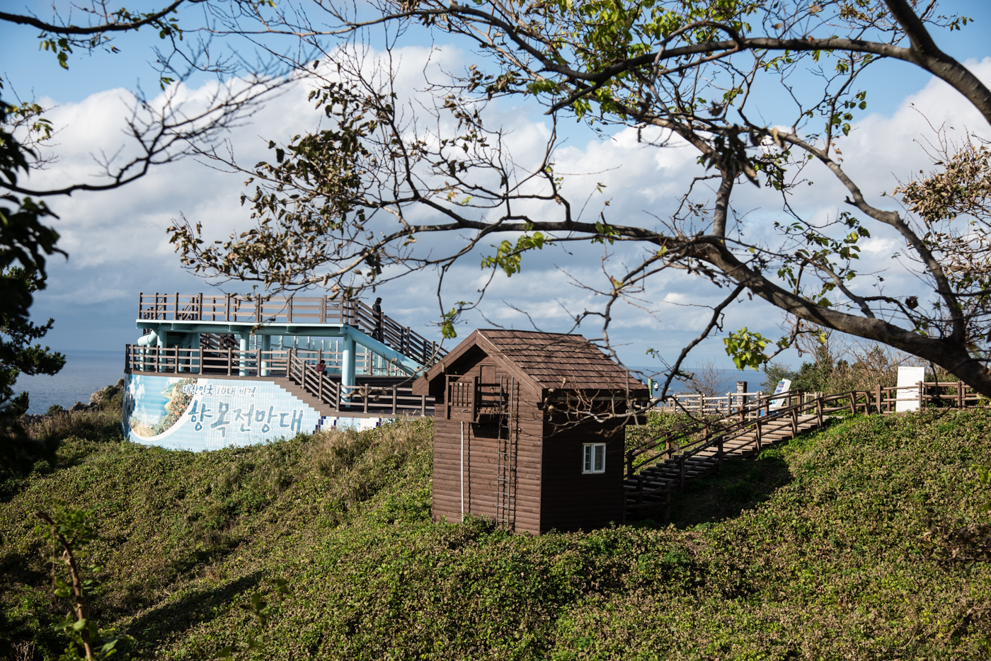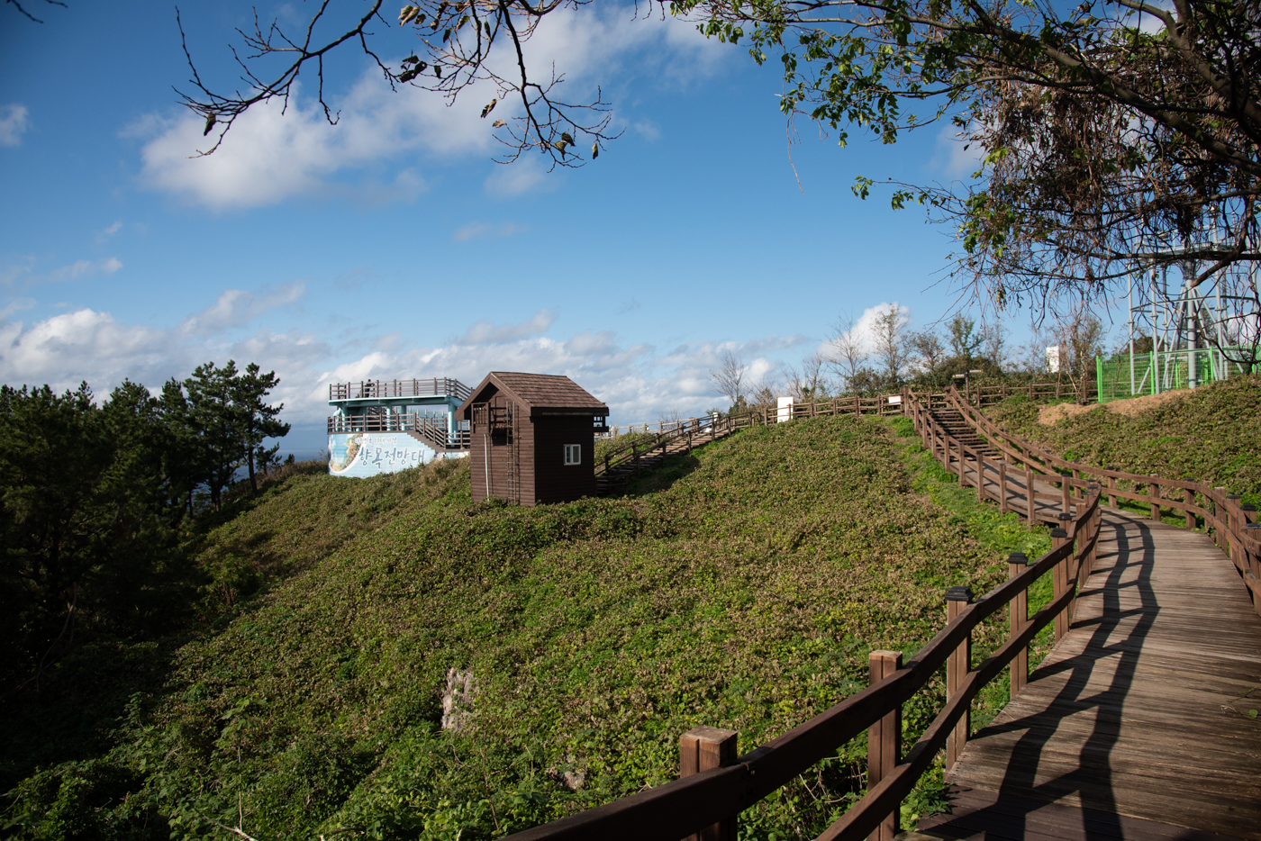 정상에서 내려 등산로를 따라 15분정도 올라가면 좌측으로는 전망대, 우측으로는 등대가 있다.