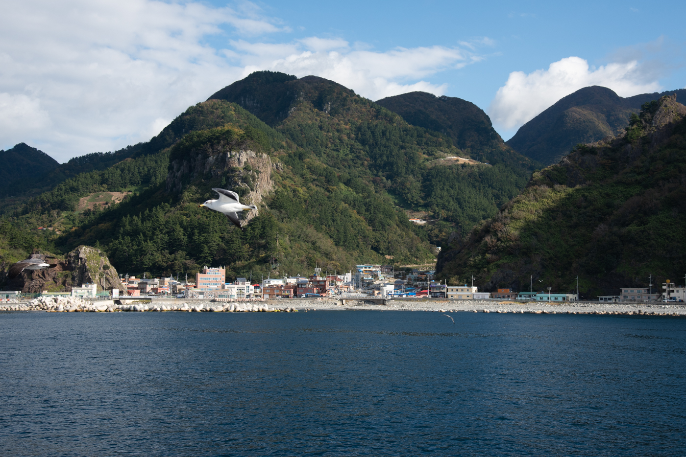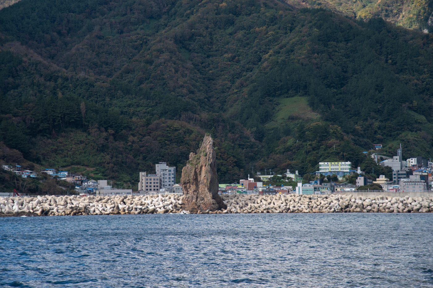 배는 좌측으로 돌아서 태화- 천부- 저동을 거쳐 도동으로 돌아오니까 우측 난간에 서 있어여한다.