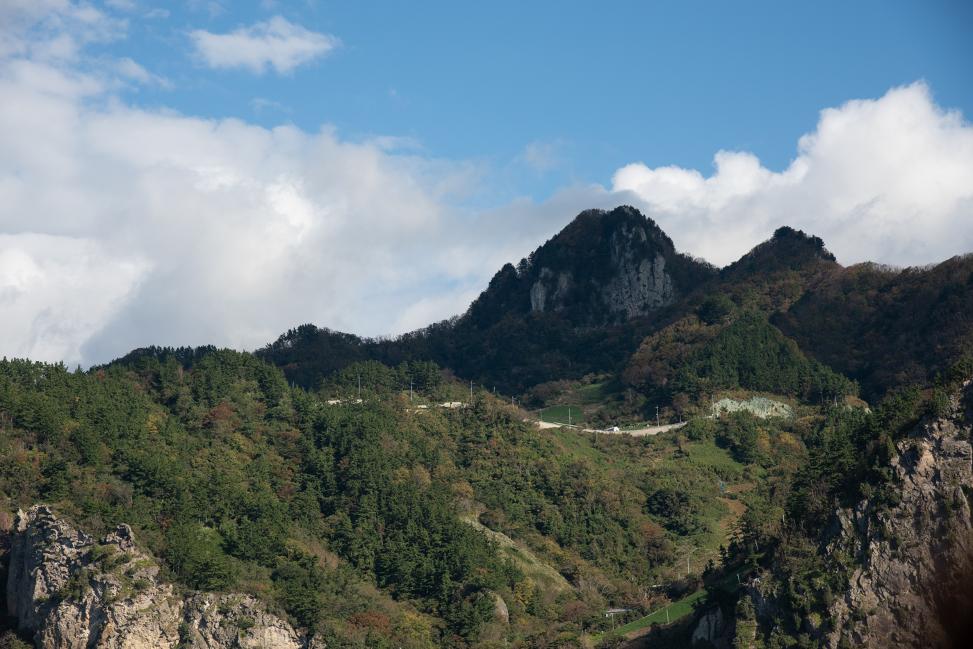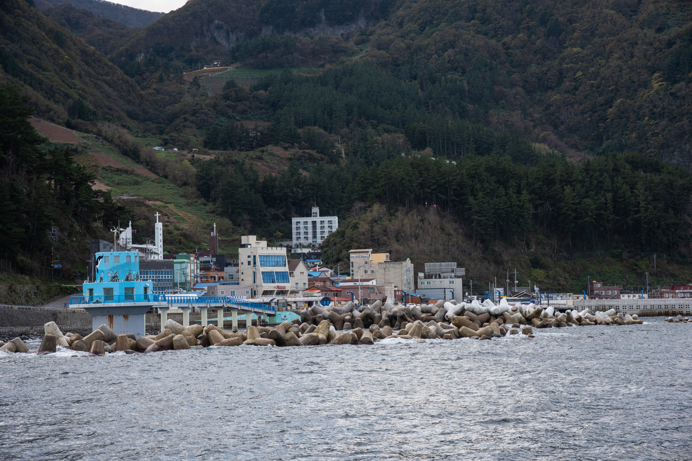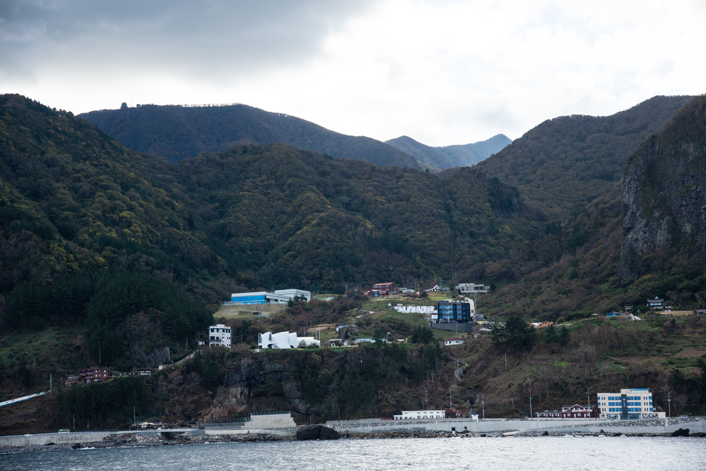 사동항을 지나 울릉도공항 건설 현장의 모습