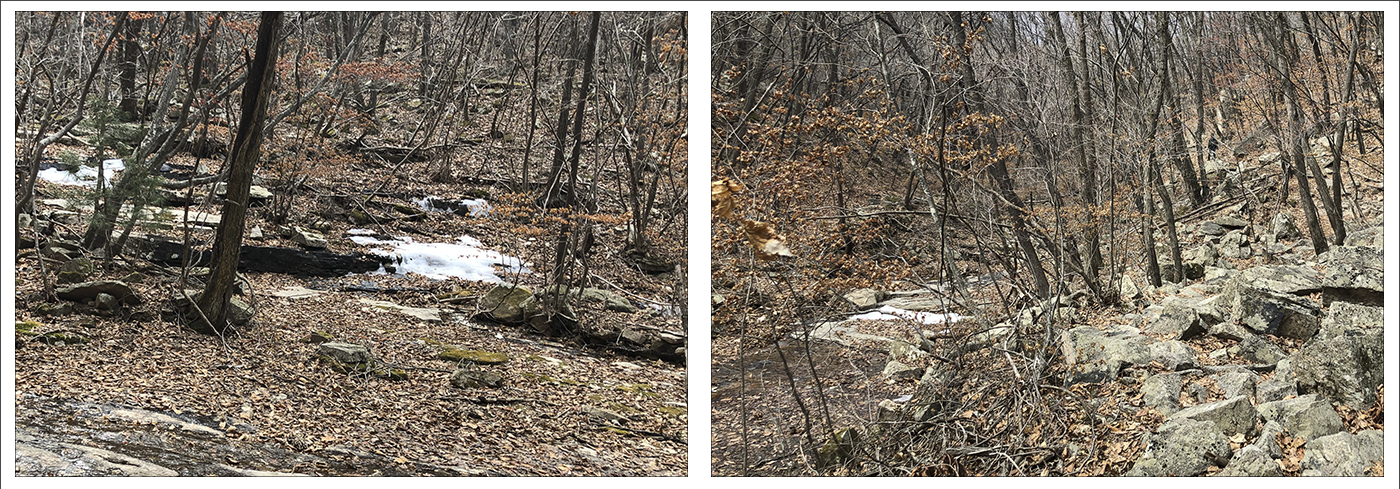 계곡에는 물이 말라 붙어 있다. 극심한 겨울 가뭄의 영향인가?