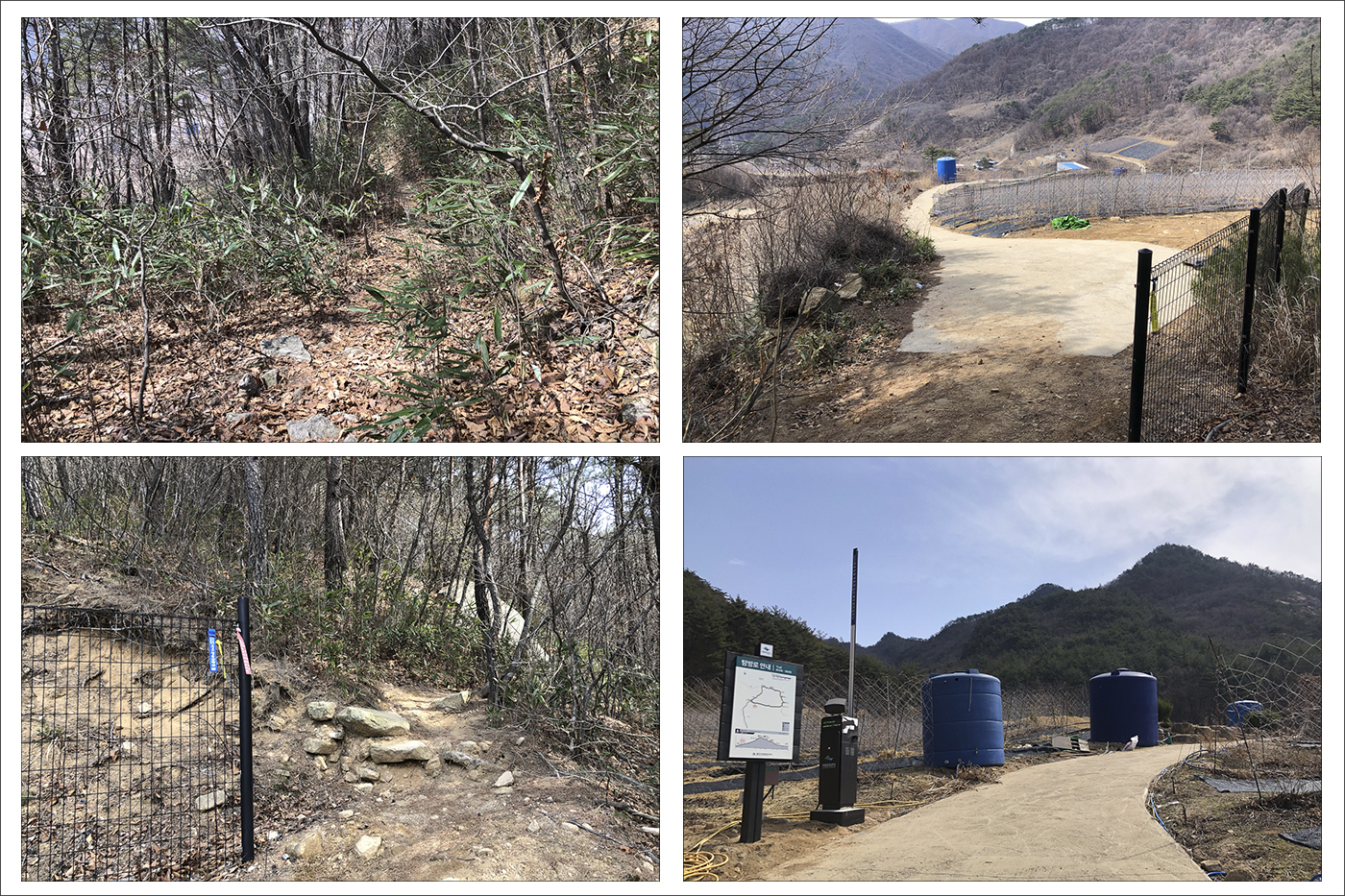 철망을 쳐 출입통제를 하고 있는데 약간의 틈은 있다. 백두대간을 산행하는 사람들은 금지구역을 통해 이동한다 한다.