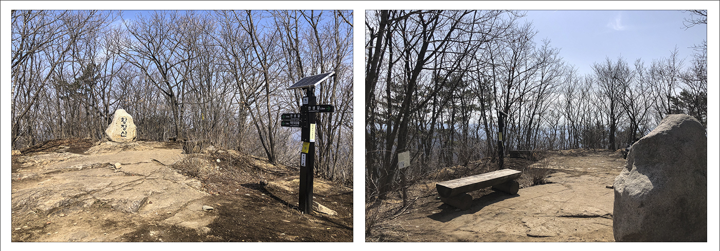 주차장에서 부터 근 2시간 남짓 산행을 해 정상에 도착했다. 정상석이 제법 크다