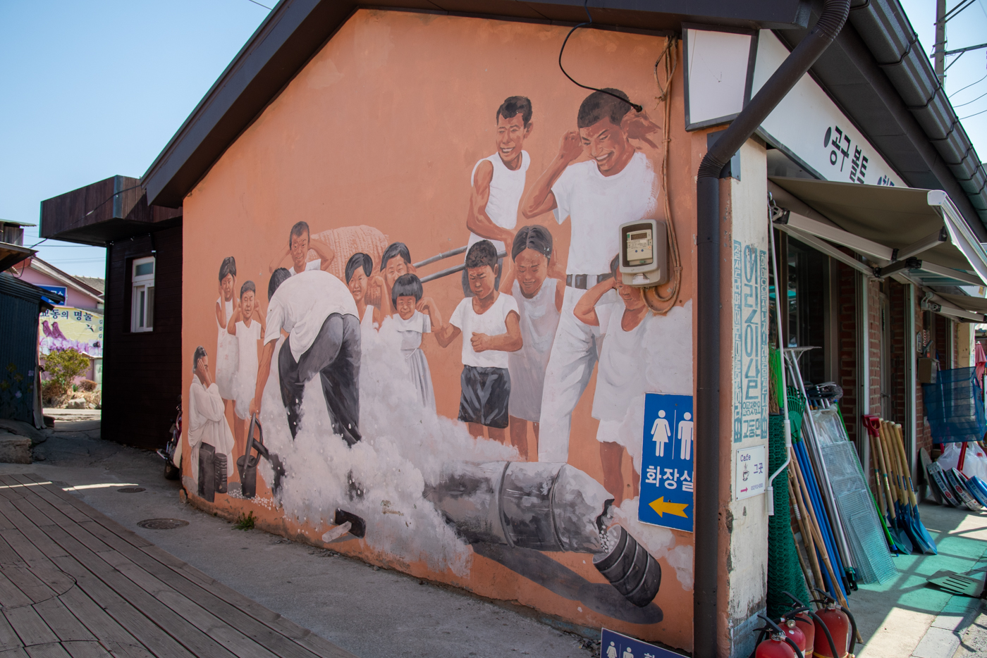외지에서 온 젊은 세대들이 나이 많으신 해녀들을 축으로한 지역주민들과 함께