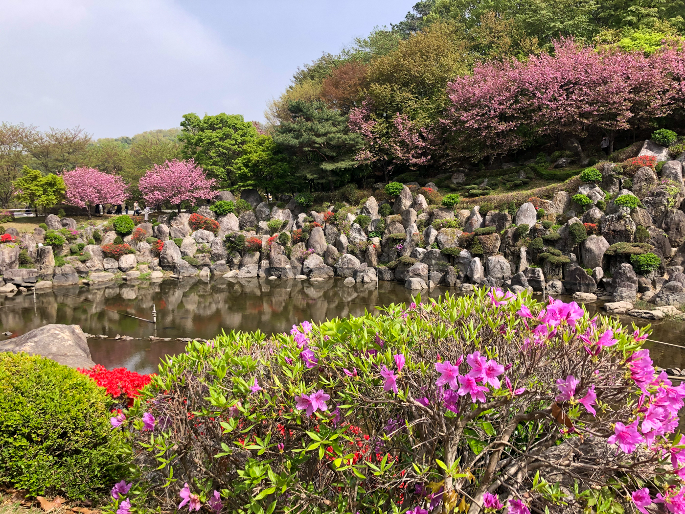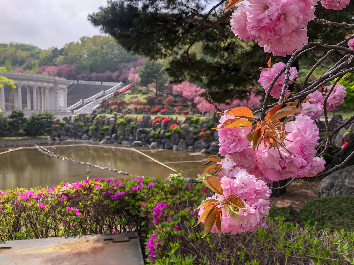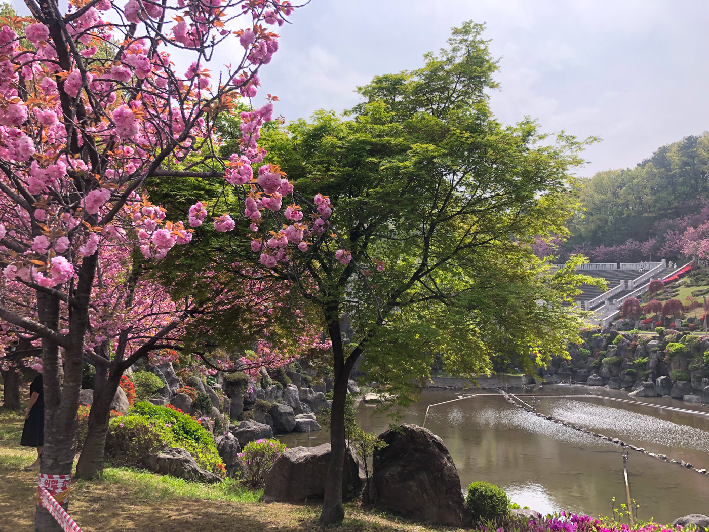 아직 겹벚꽃은 화사하게 남아 상춘객들을 유혹하고 있다.