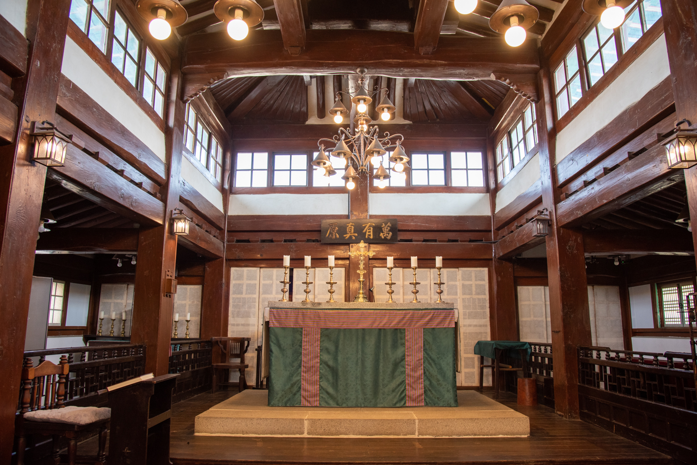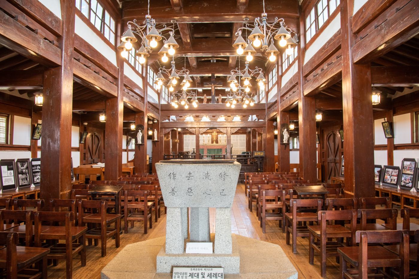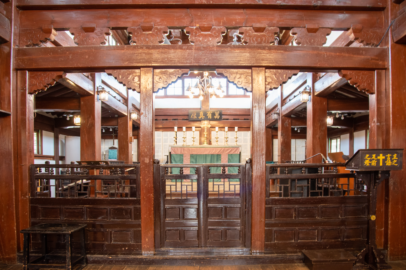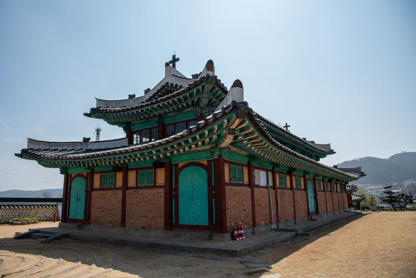 한국전통양식을 따르고 있으며, 배치와 내부구조는 서양식 바실리카 건축양식을 응용하여