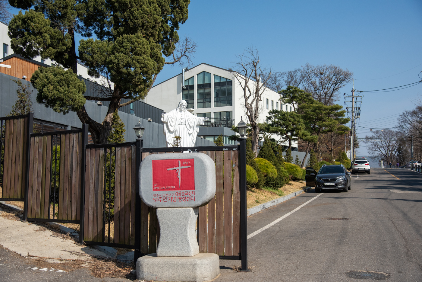 천주교 인천교구 '갑곶순교성지 50주년 기념 영성센터' 표지판이 있는 입구