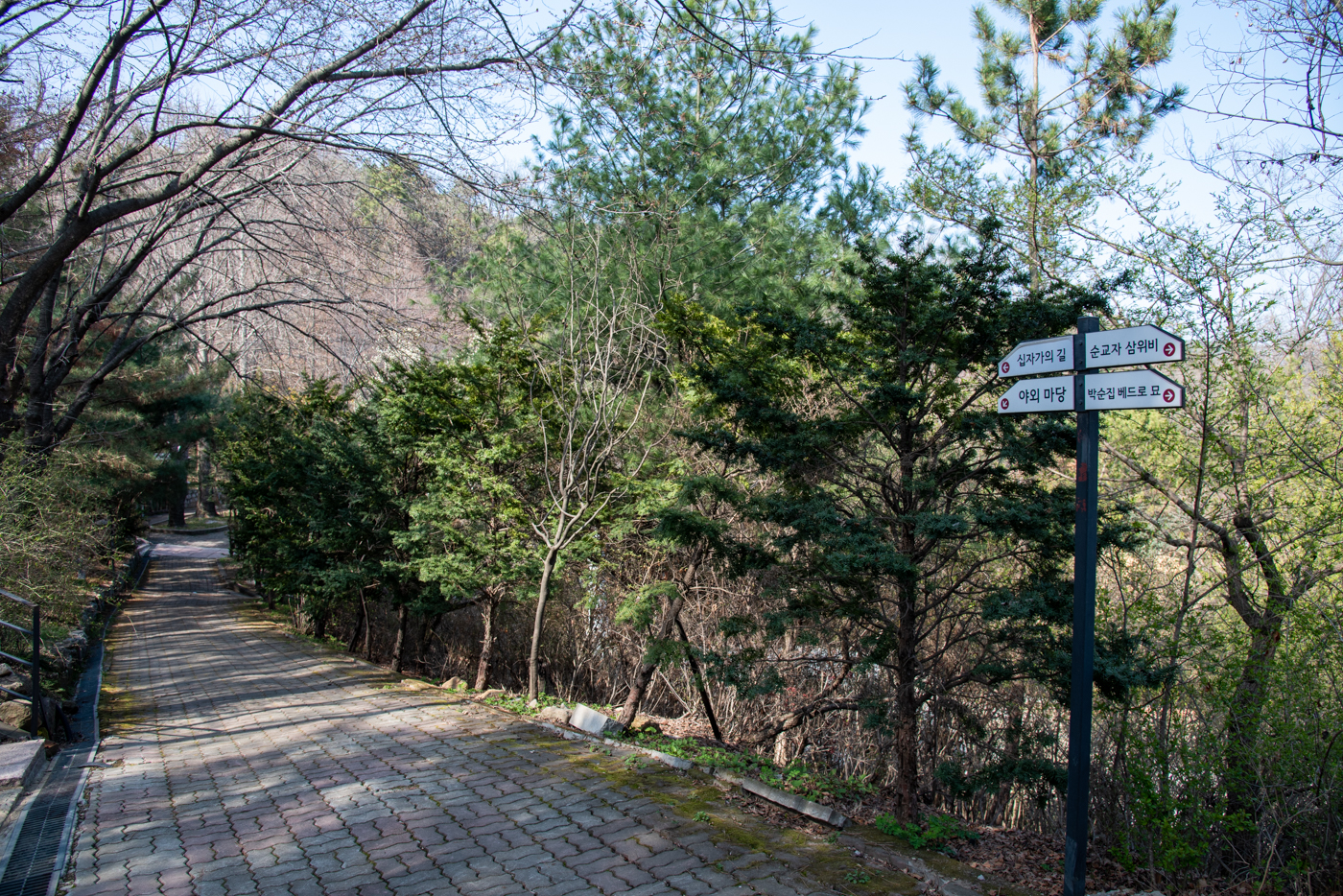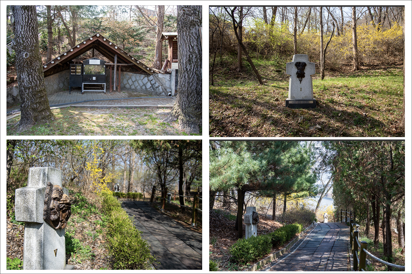 갑곶순교성지 입구로 들어서면 기념성당과 성모상을 지나 성지로 갈라지는 길이 있다.